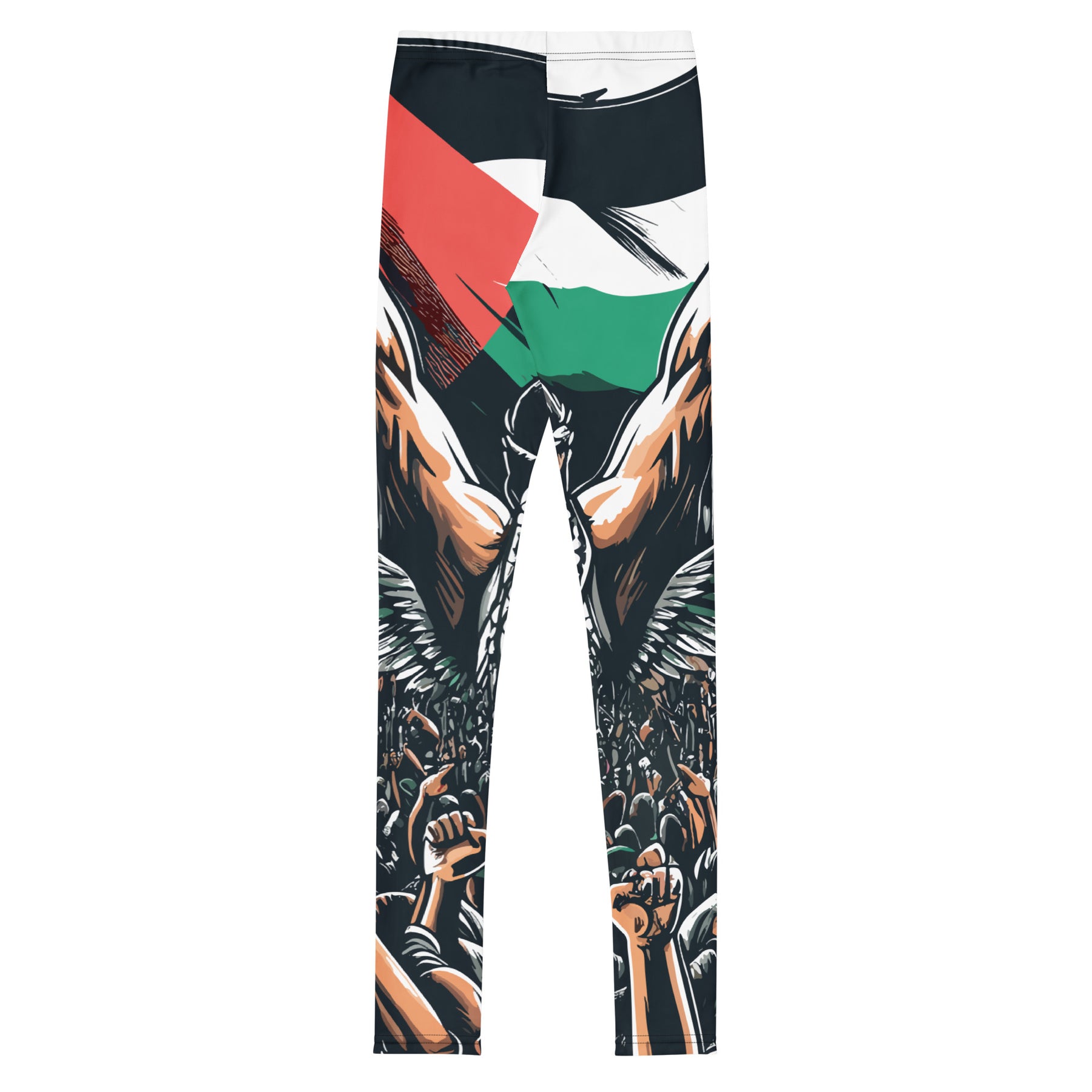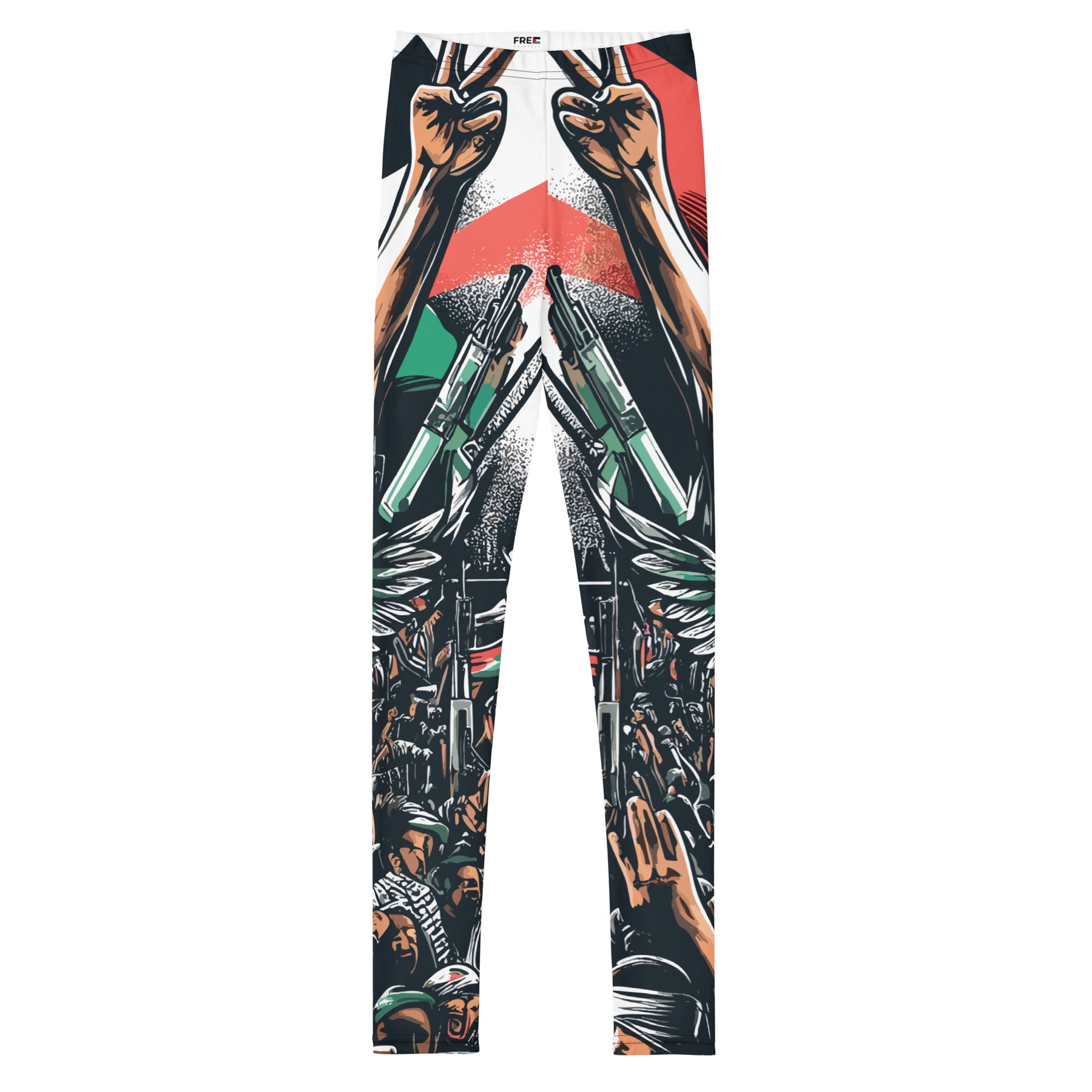 Palestinian solidarity products here and now. These youth leggings are comfort personified. They're elastic, soft, and have vibrant colors that are made to last. Each pair is precision-cut and hand-sewn to ensure the perfect fit.
