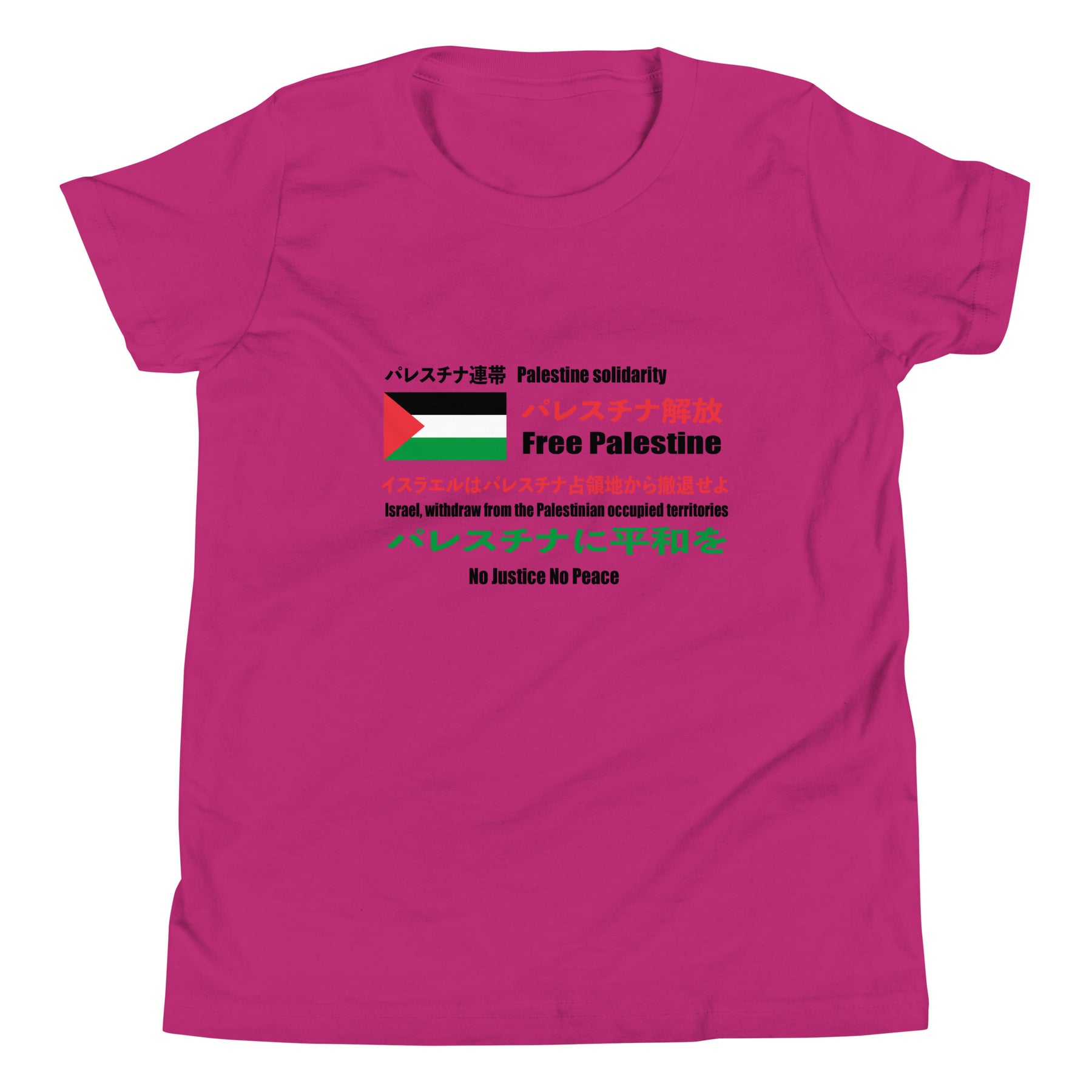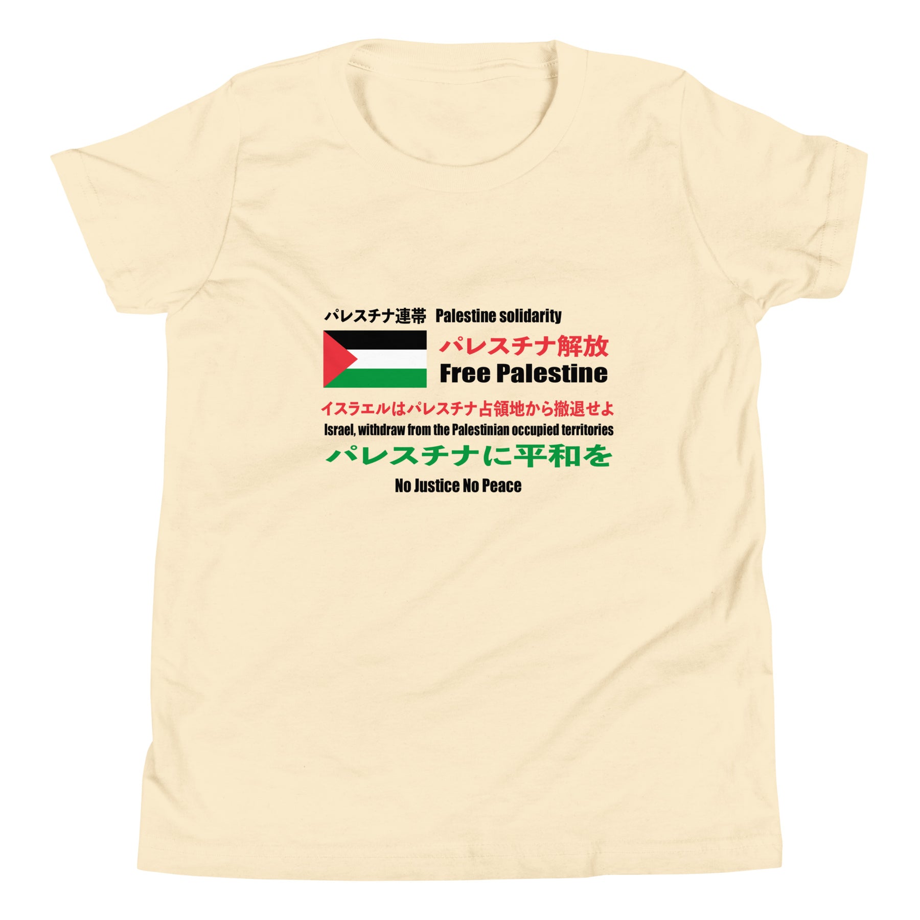 This everyday youth tee blends comfort with a strong voice. Printed with a bold bilingual Free Palestine design, exclusive to Japan, it empowers young allies to stand in solidarity: