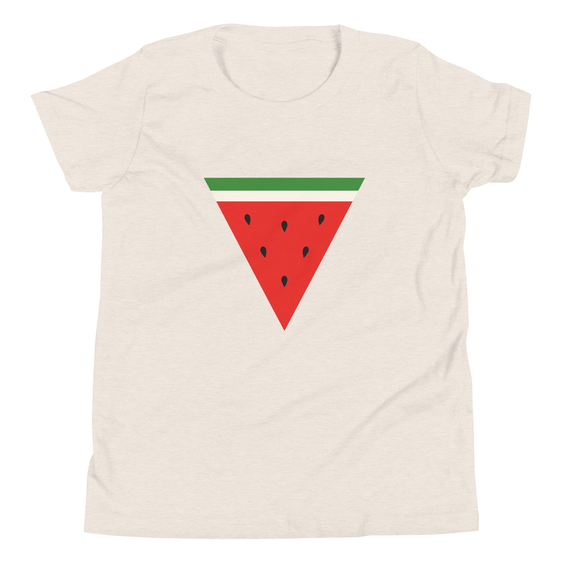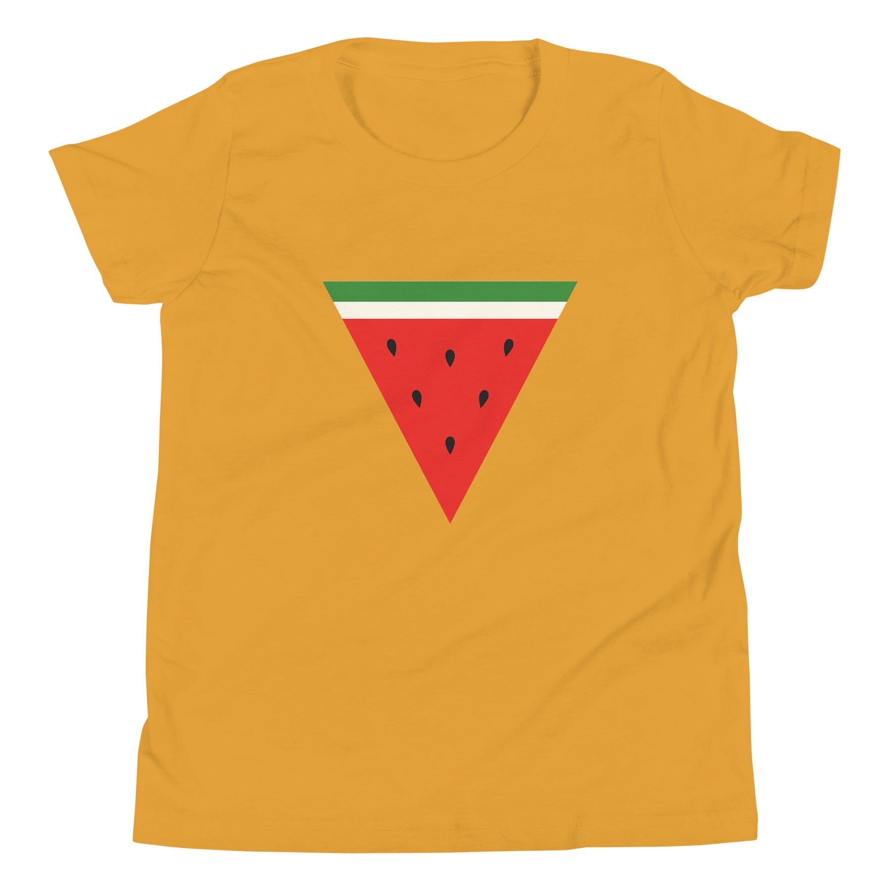 This is the tee that you've been looking for, and it's bound to become a favorite in any youngster's wardrobe. It's light, soft, and comes with a unique triangle watermelon Free Palestine design that stands out from the crowd wherever you go!