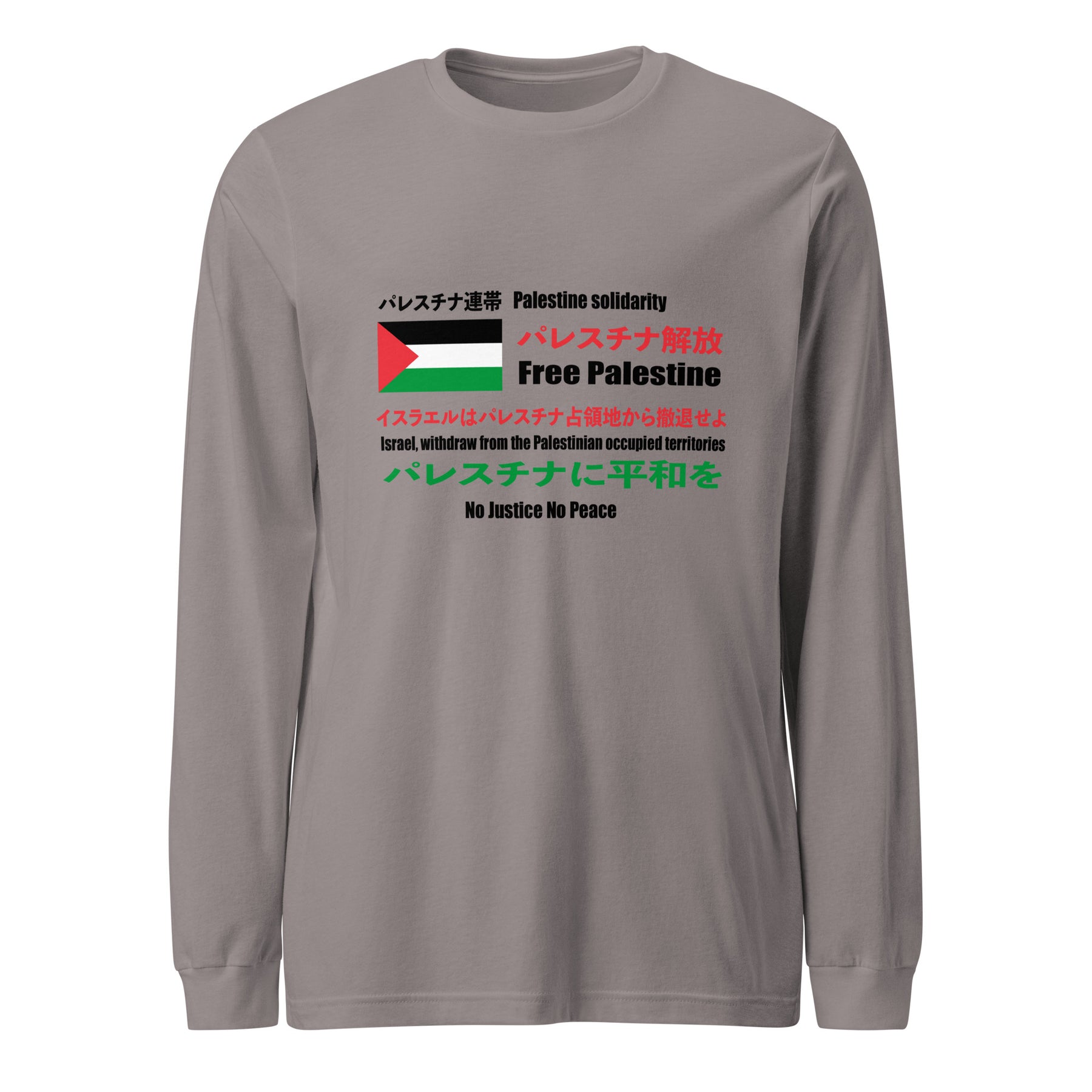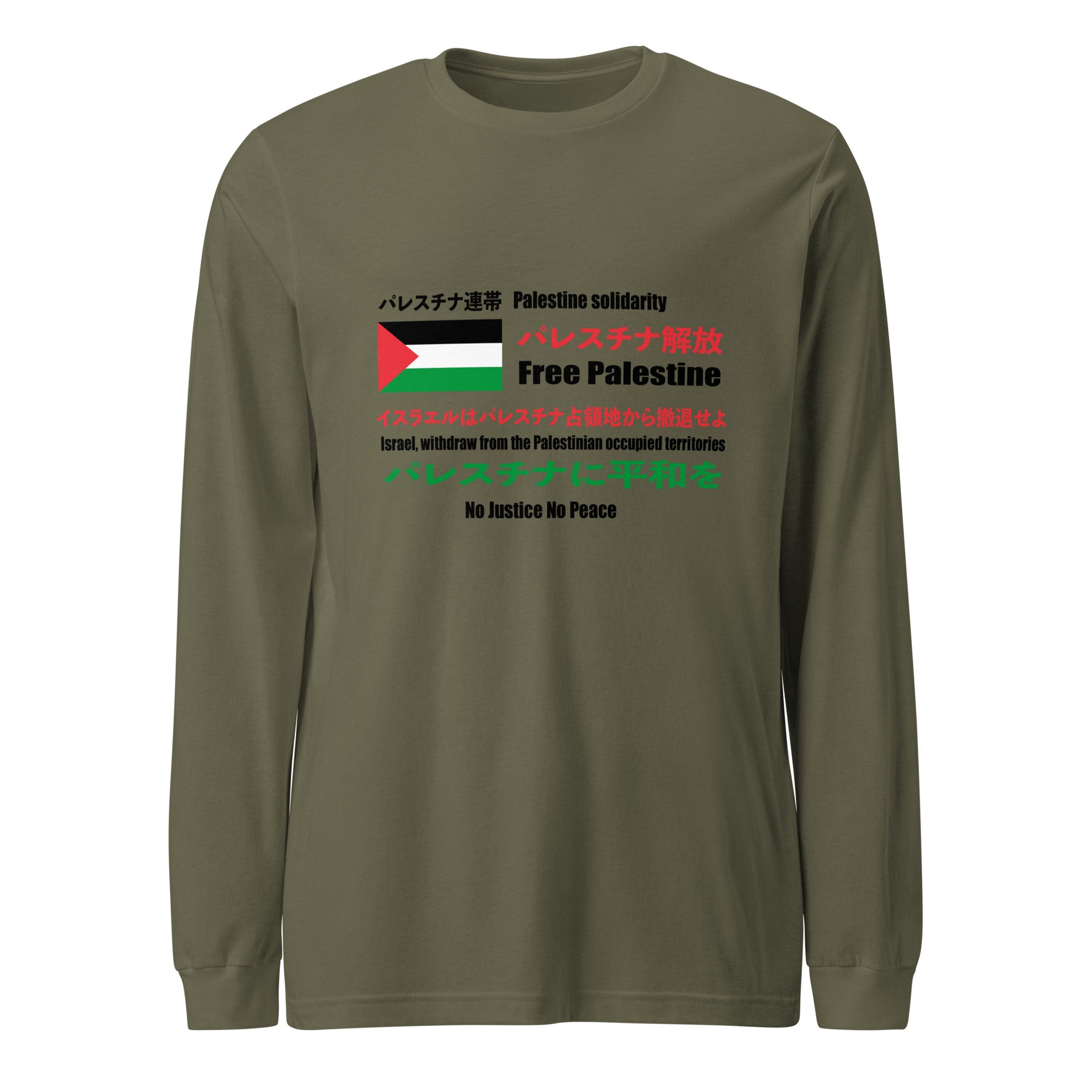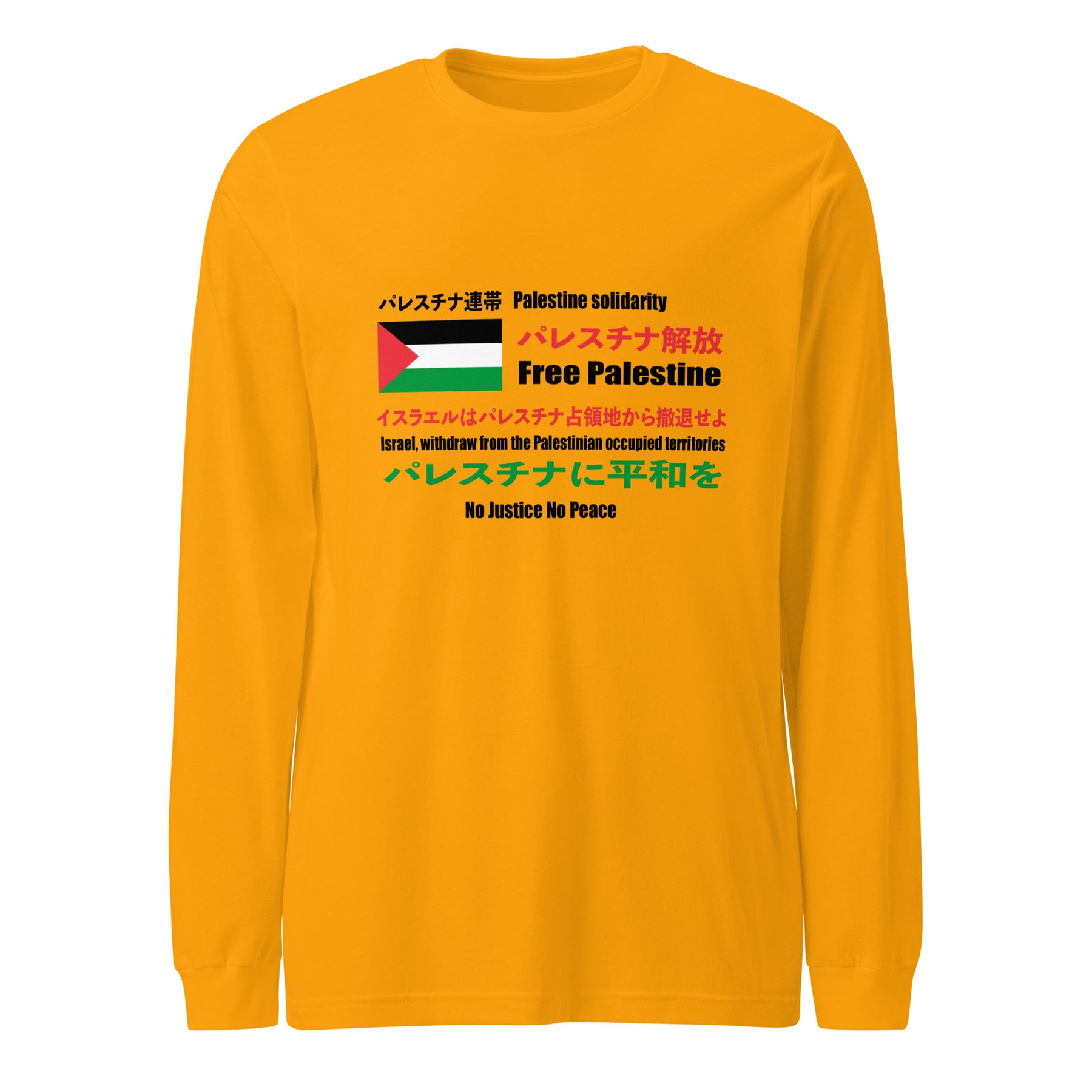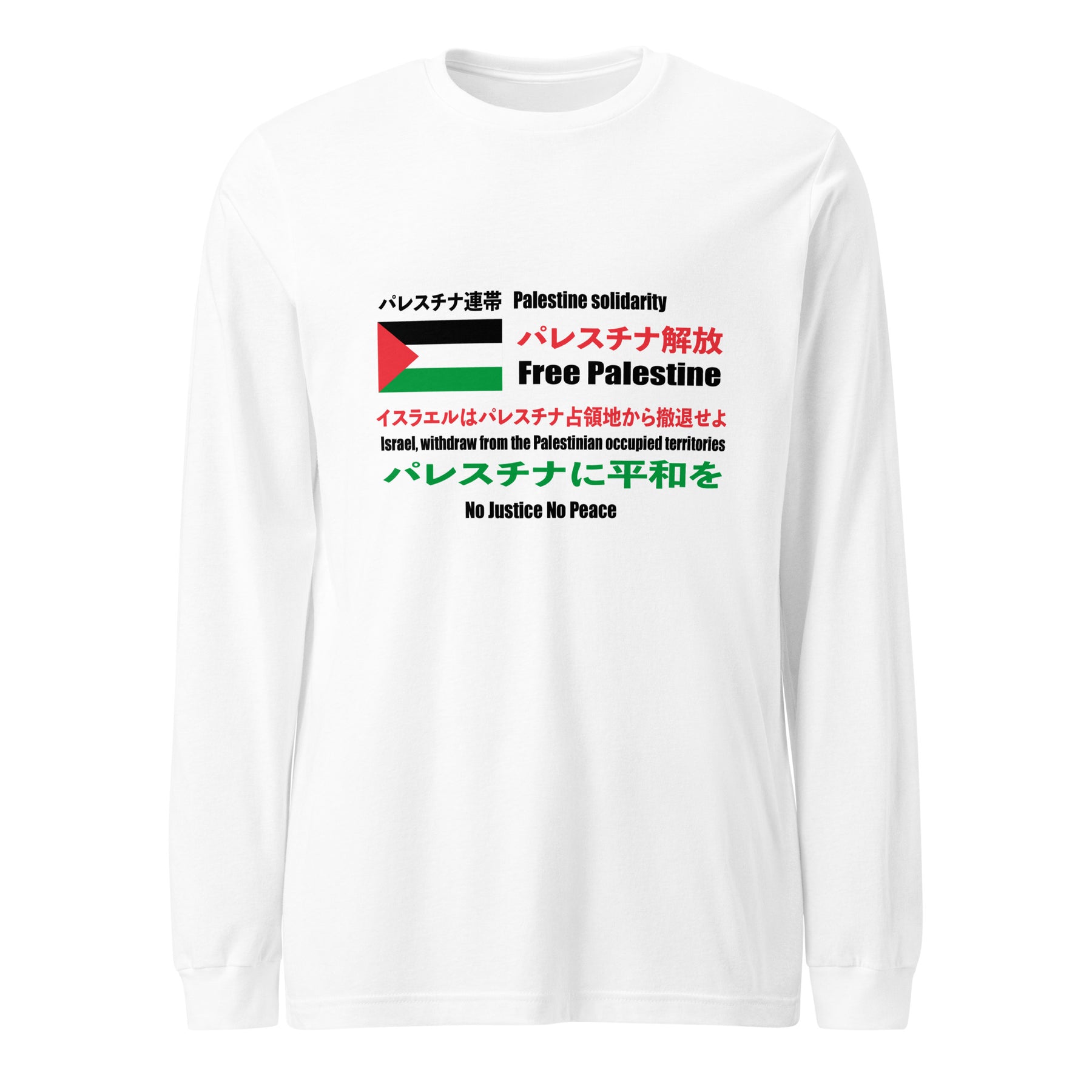 Wear the message loud and clear with this long sleeve tee, part of our Japanese Exclusive Free Palestine collection. Featuring bilingual text in support of liberation and peace, it reads: