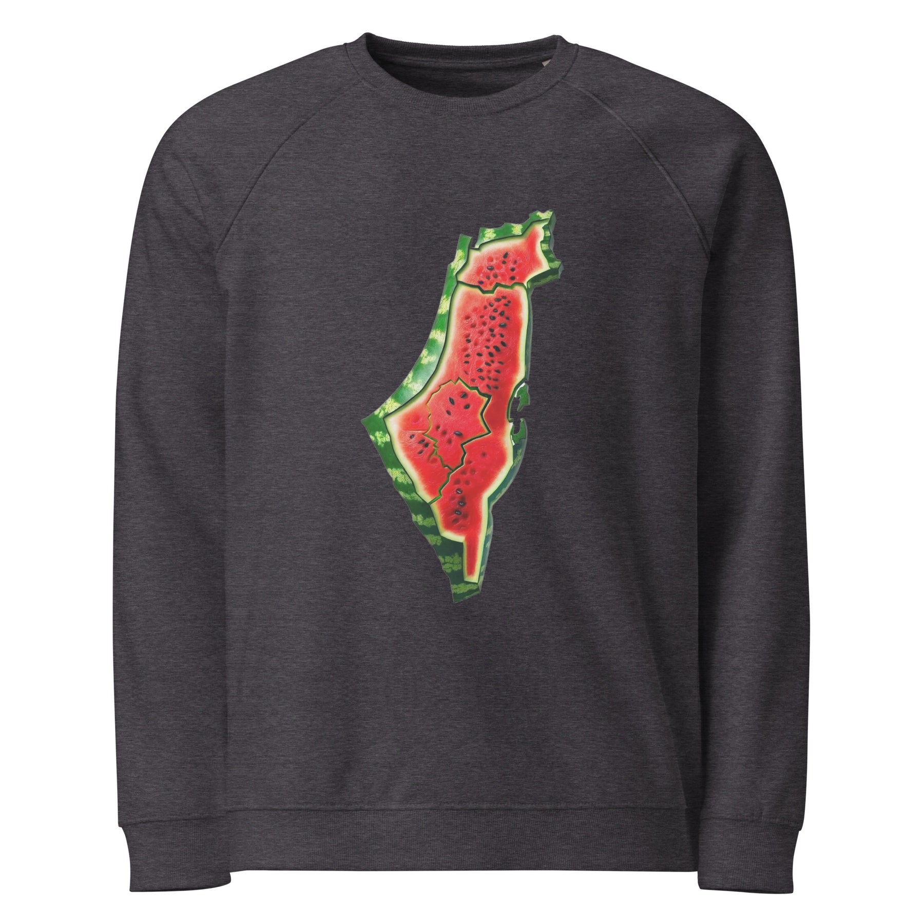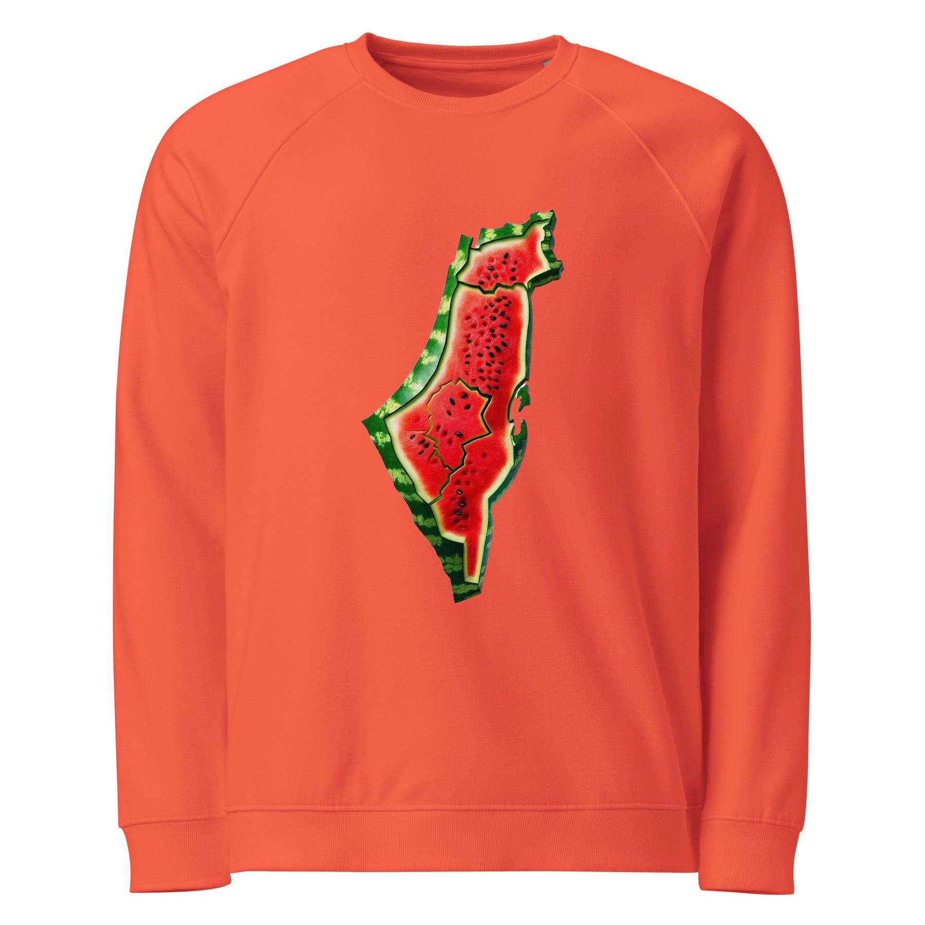To do list: feel comfy and look stylish at the same time. Mark both tasks as done with the unisex organic raglan sweatshirt. Its brushed fleece lining will make you feel like you’re being hugged by a cloud of softness . . . and the 100% cotton exterior will ensure a smooth feel on the outside. That's our Palestine support apparel.