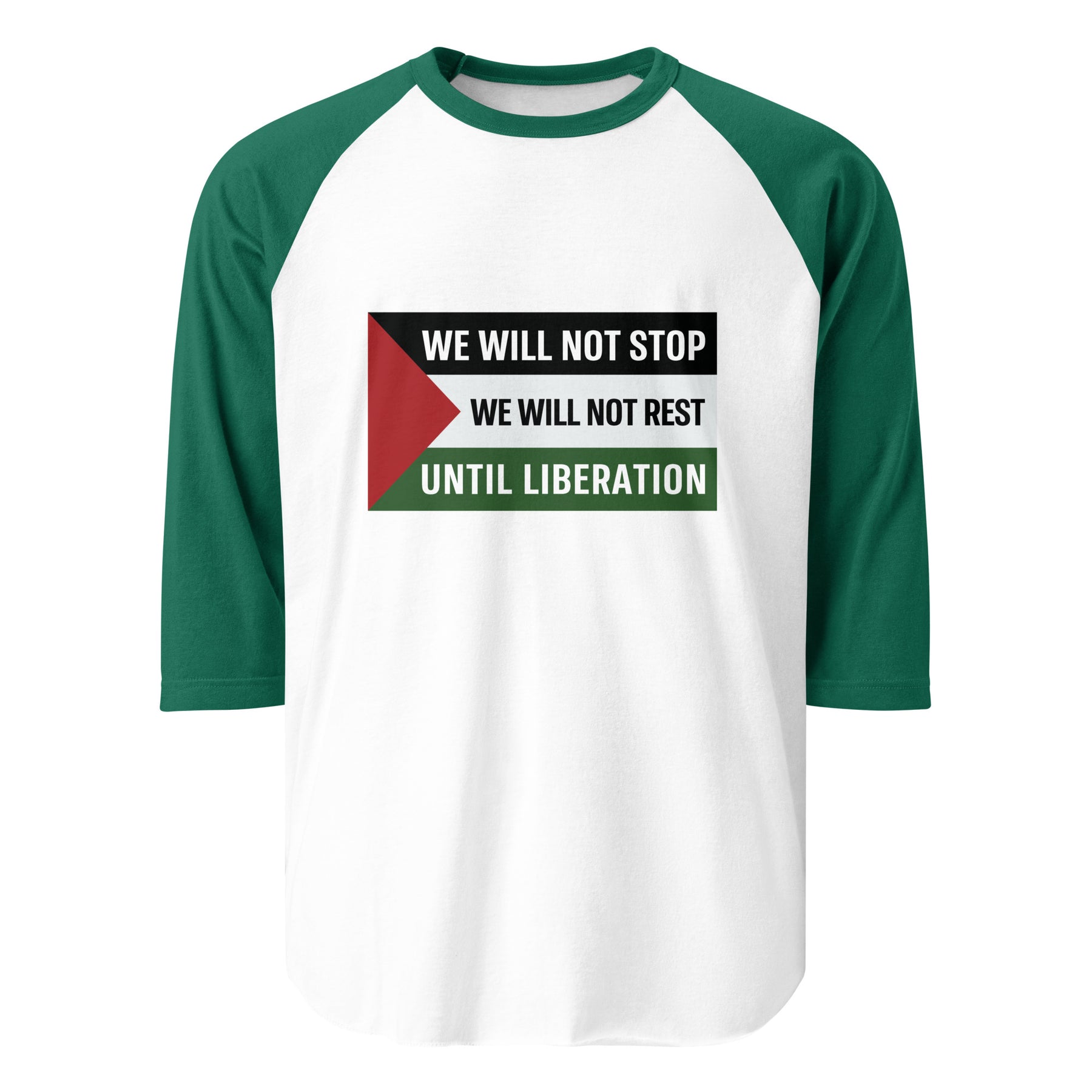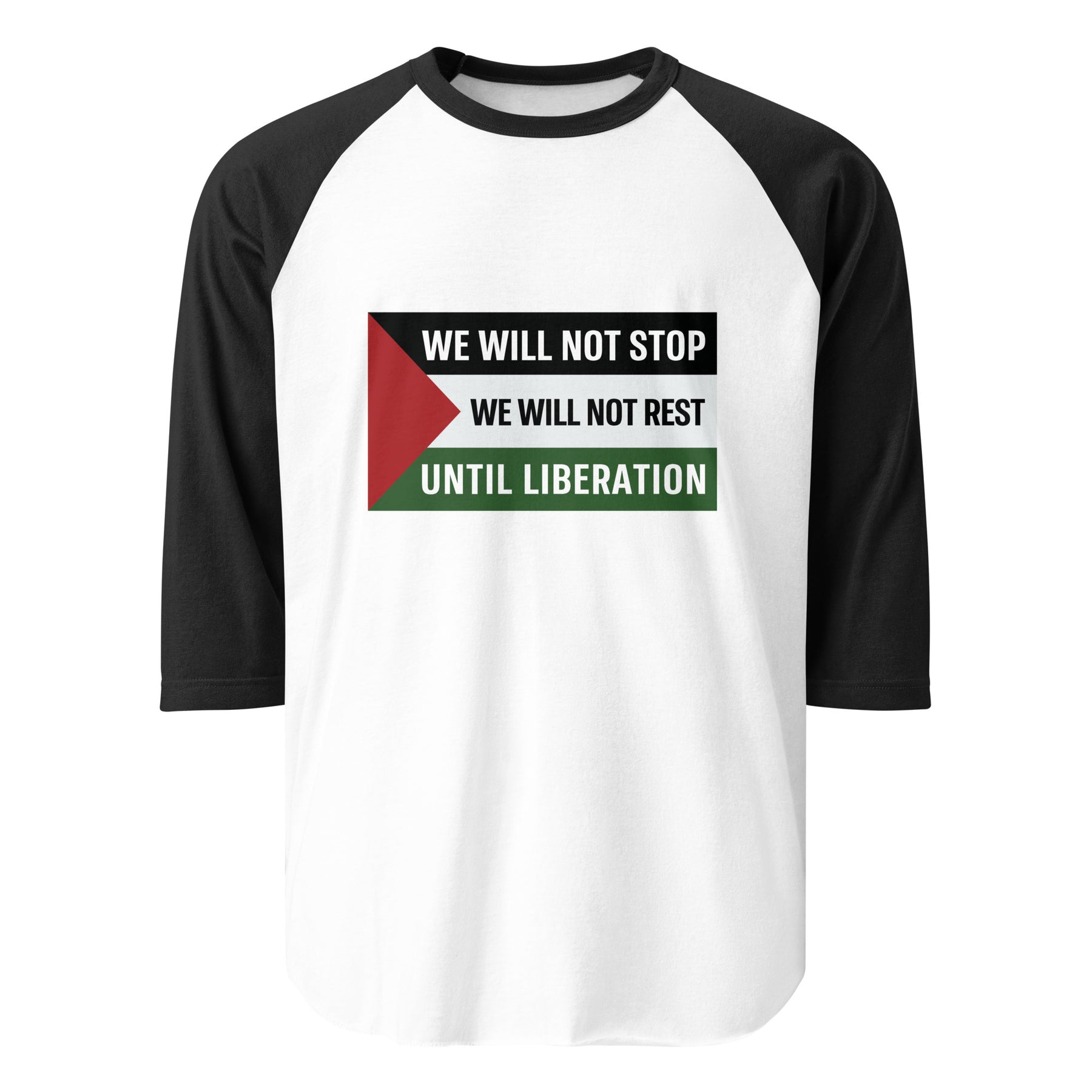 This Free Palestine 3/4 sleeve shirt features a message that needs no explanation: