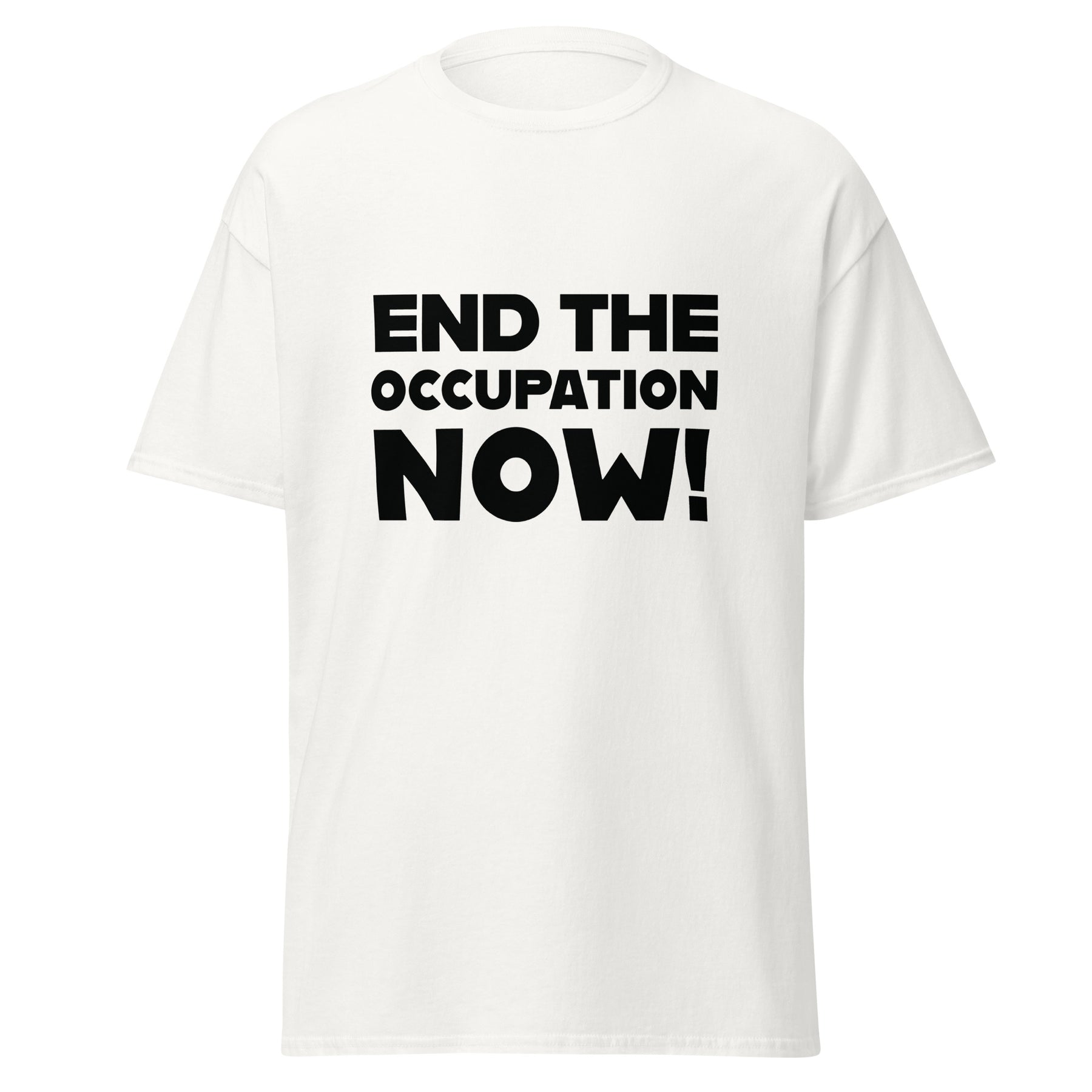 This essential Free Palestine men’s t-shirt delivers a bold demand: “End the Occupation Now!”—calling out the Israeli occupation of Palestinian land. With a timeless fit and soft cotton feel, it’s made for rallies, everyday wear, and conversations that matter.