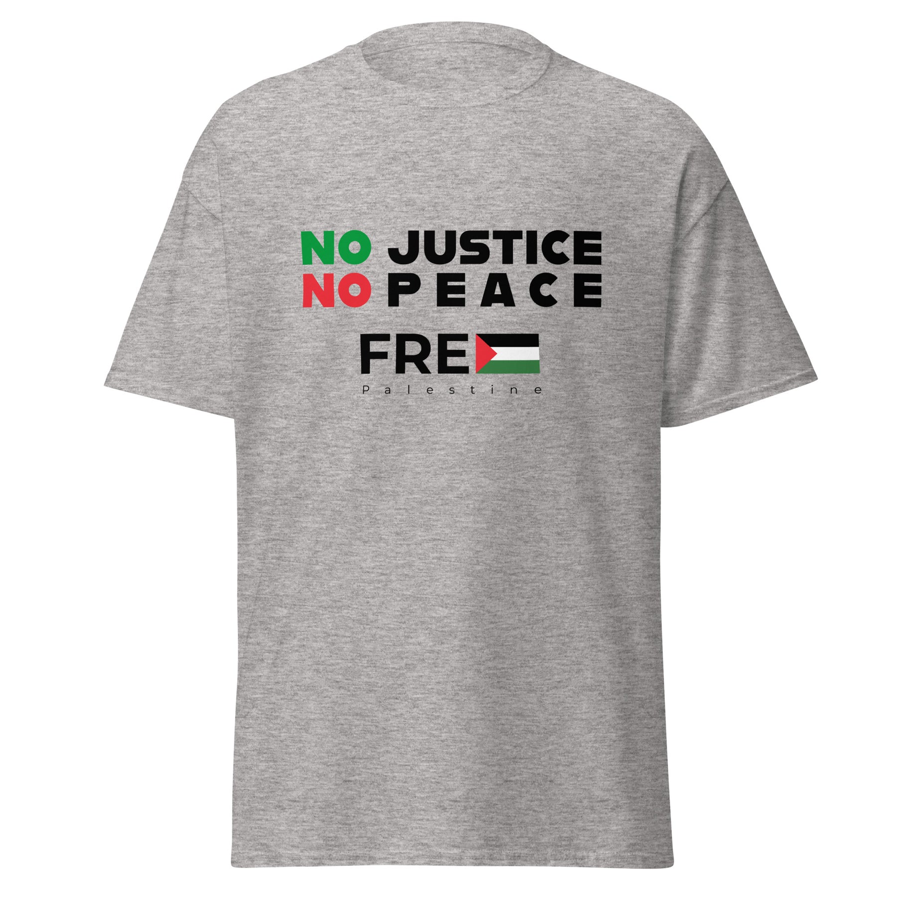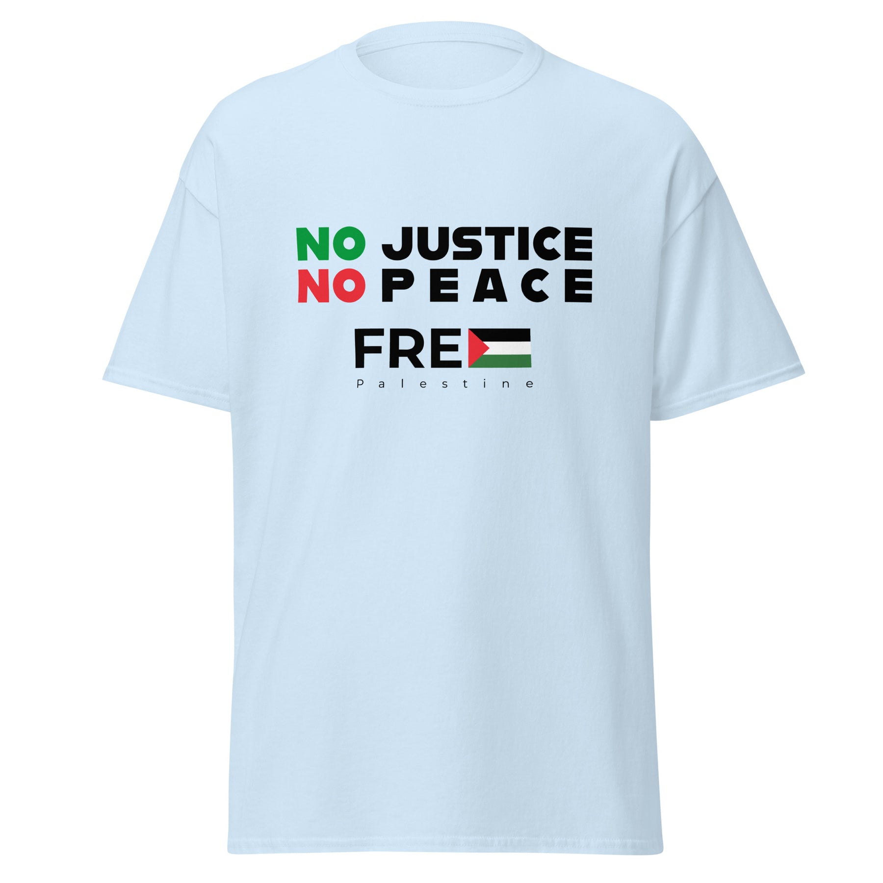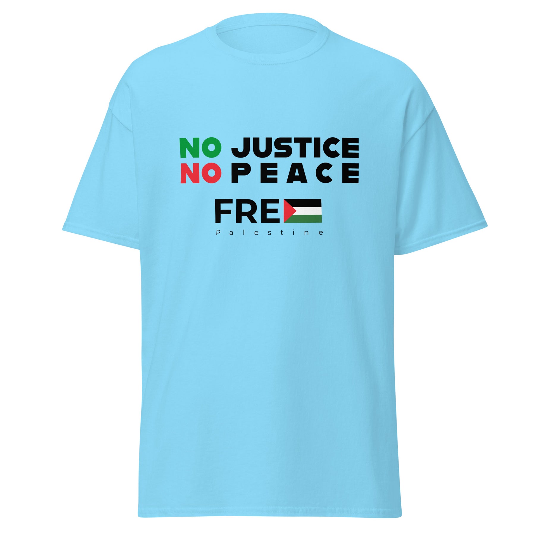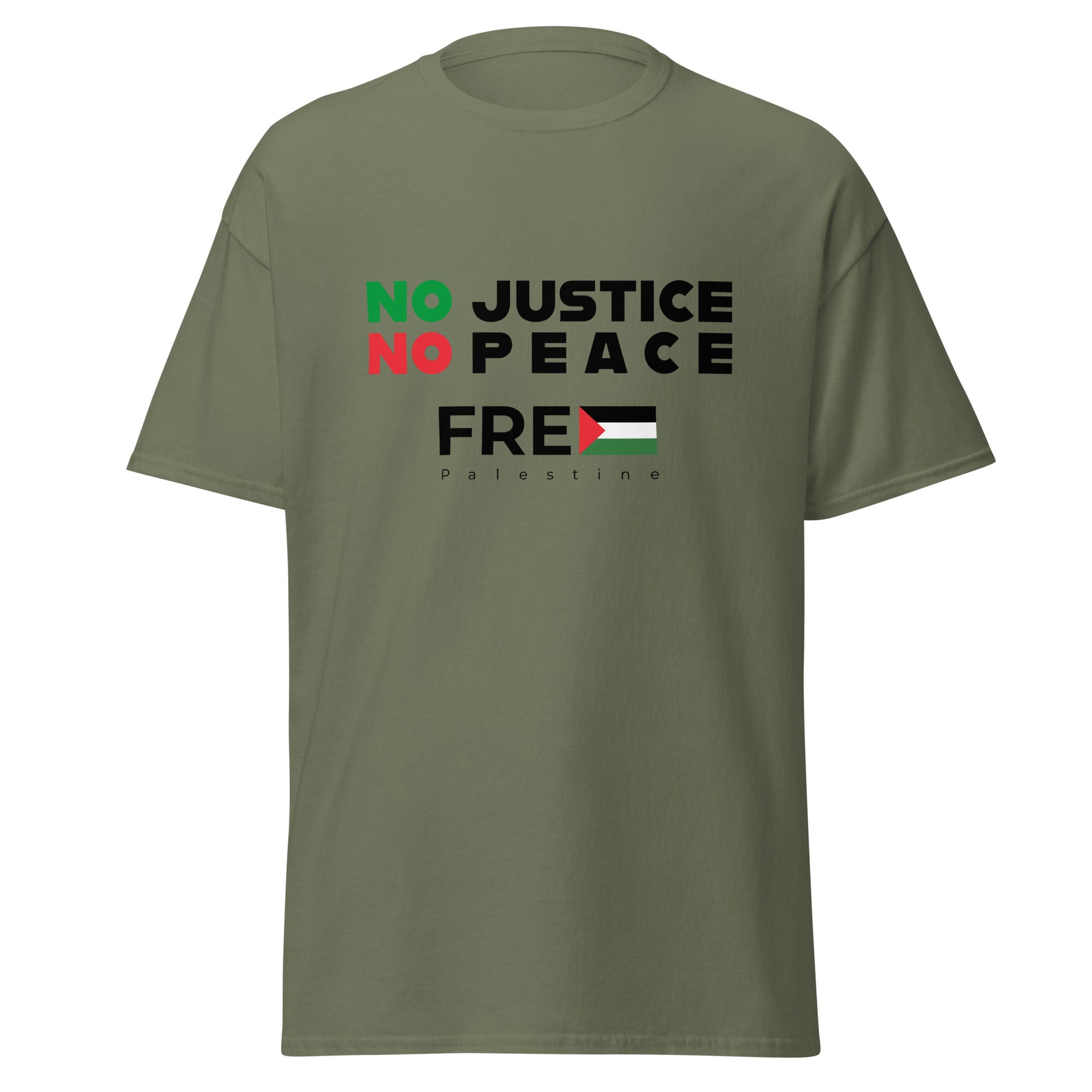 This Free Palestine men’s t-shirt is more than just everyday wear—it’s a call to action. Featuring the powerful words “No Justice No Peace,” it stands in firm solidarity with the people of Gaza and demands an end to the Israeli occupation of Palestine.