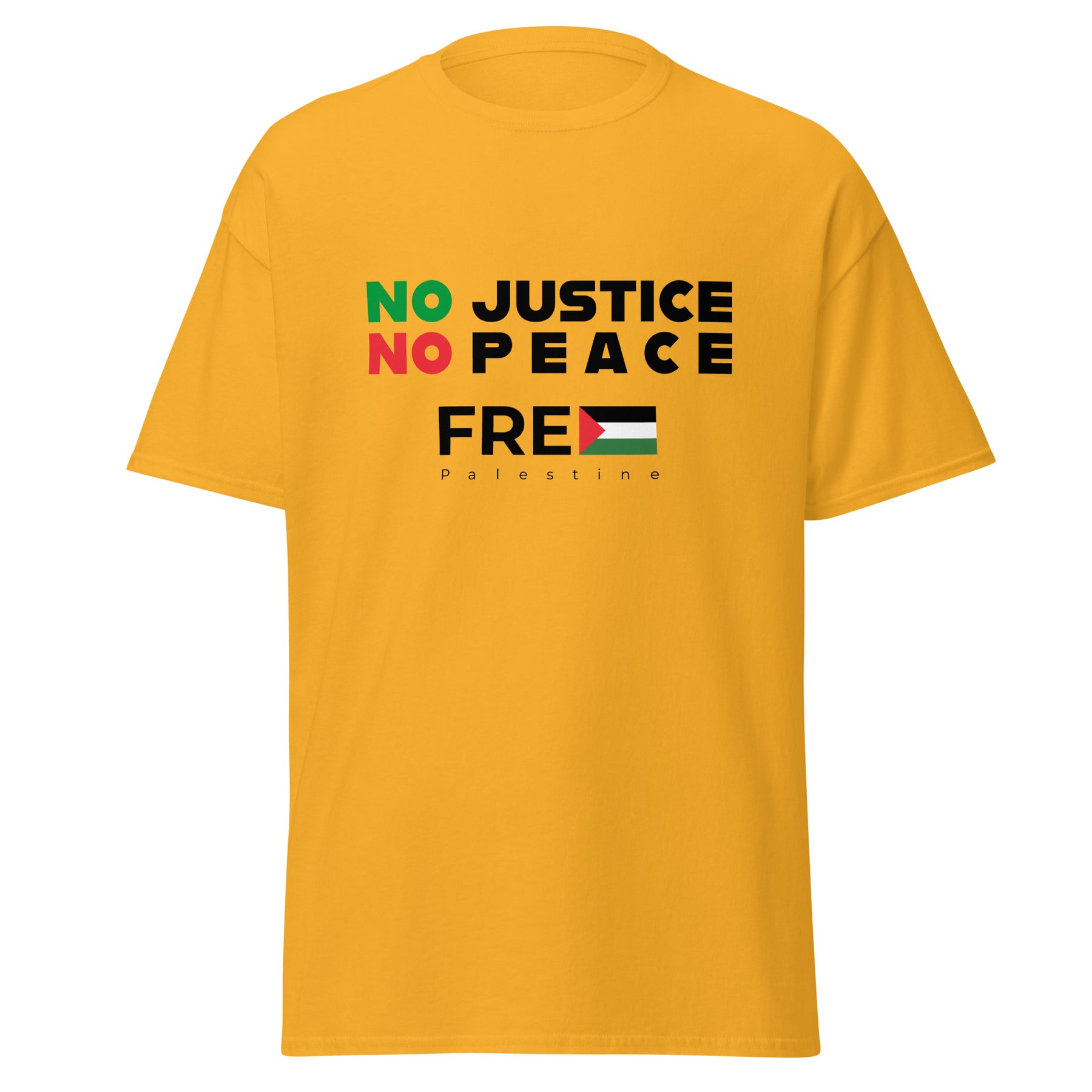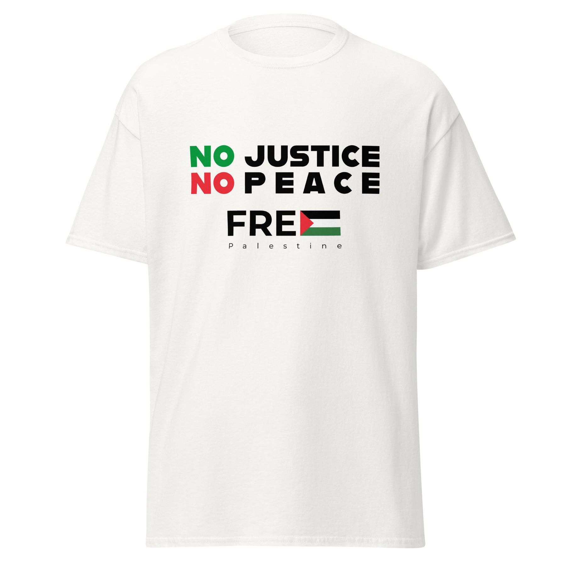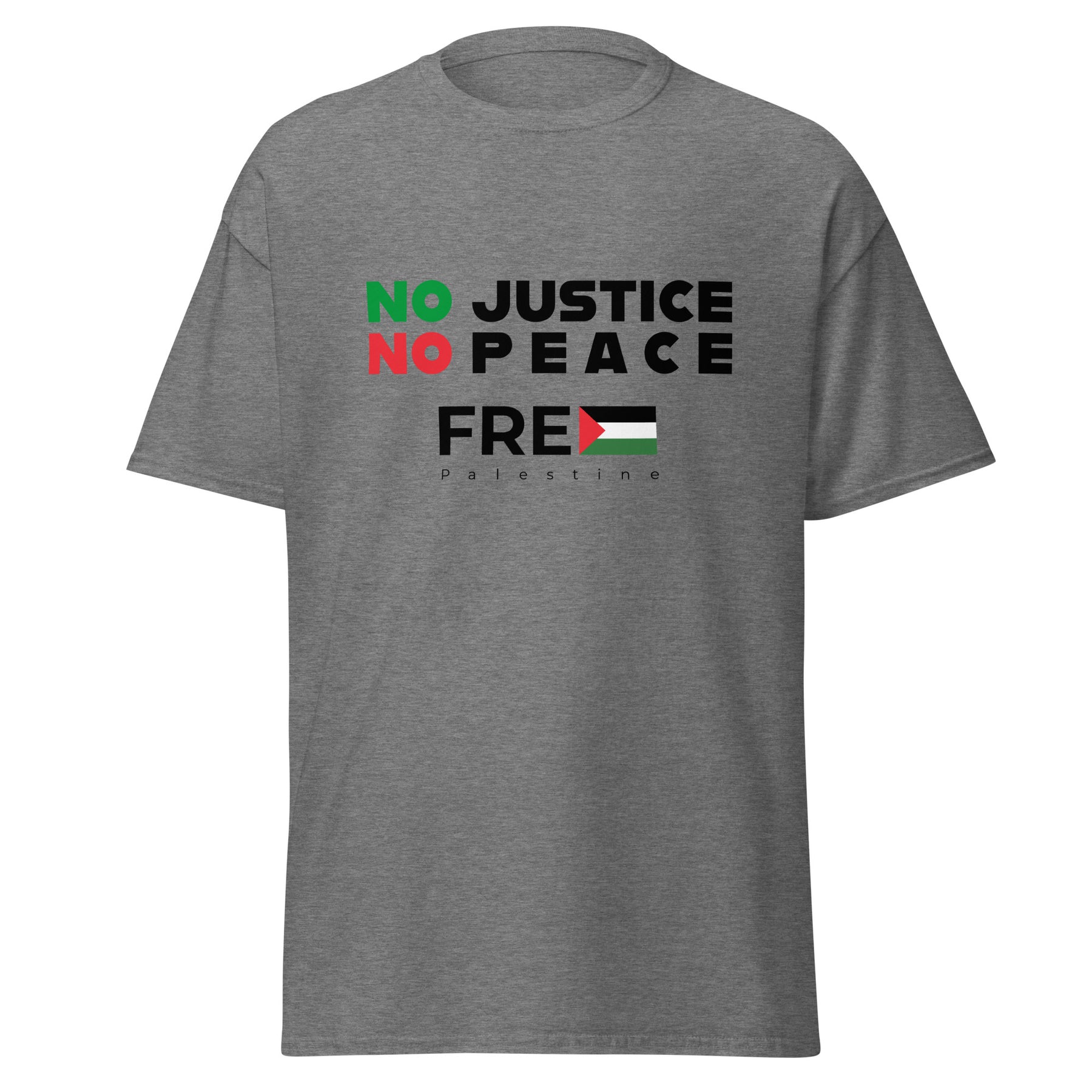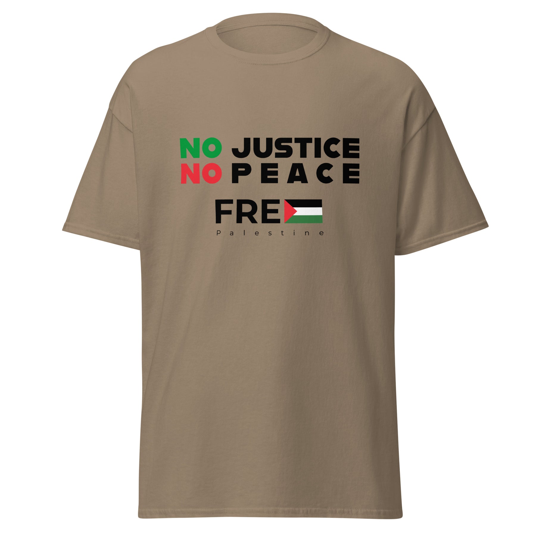 This Free Palestine men’s t-shirt is more than just everyday wear—it’s a call to action. Featuring the powerful words “No Justice No Peace,” it stands in firm solidarity with the people of Gaza and demands an end to the Israeli occupation of Palestine.