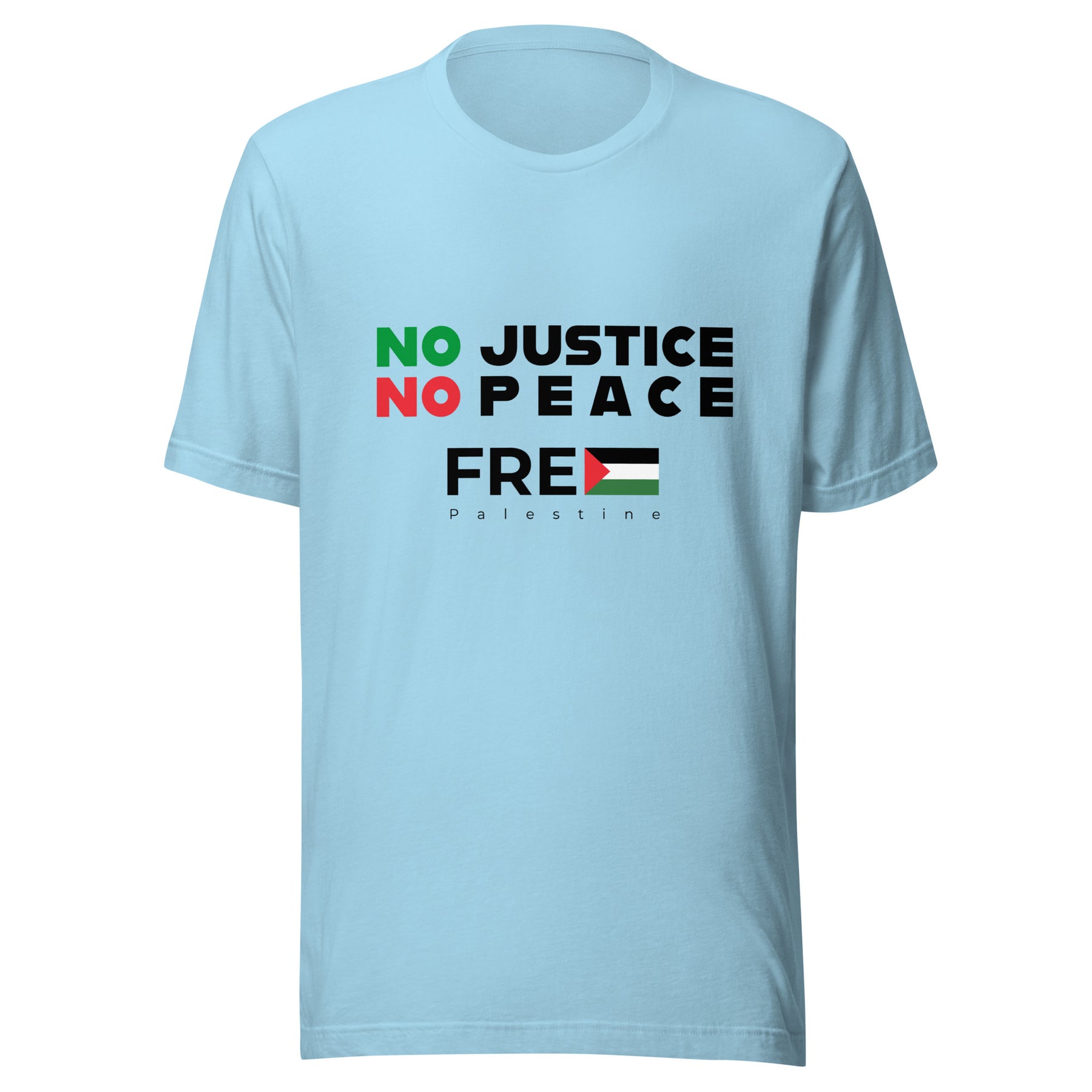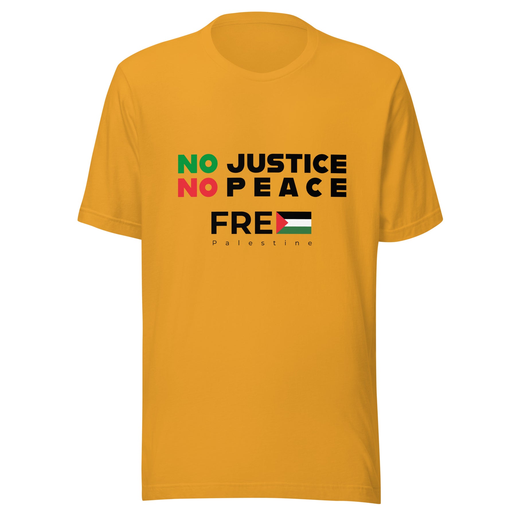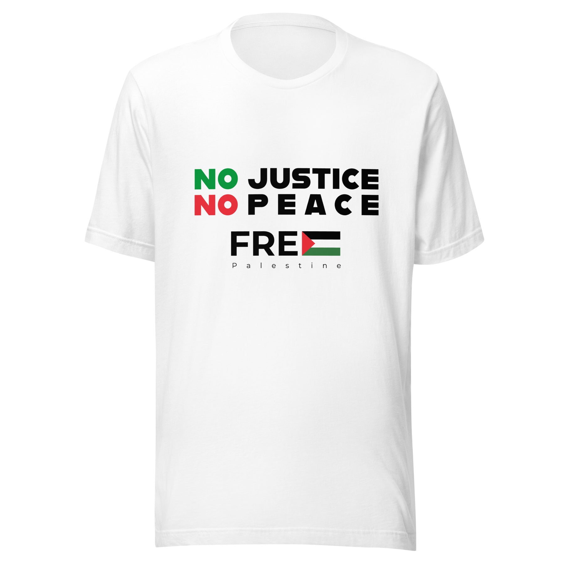 This pro-Palestinian men’s t-shirt carries the defiant message: “No Justice No Peace.” Stand in solidarity with Gaza, speak out against apartheid, and demand an end to the Israeli occupation of Palestine—all while staying comfortable in this everyday essential.