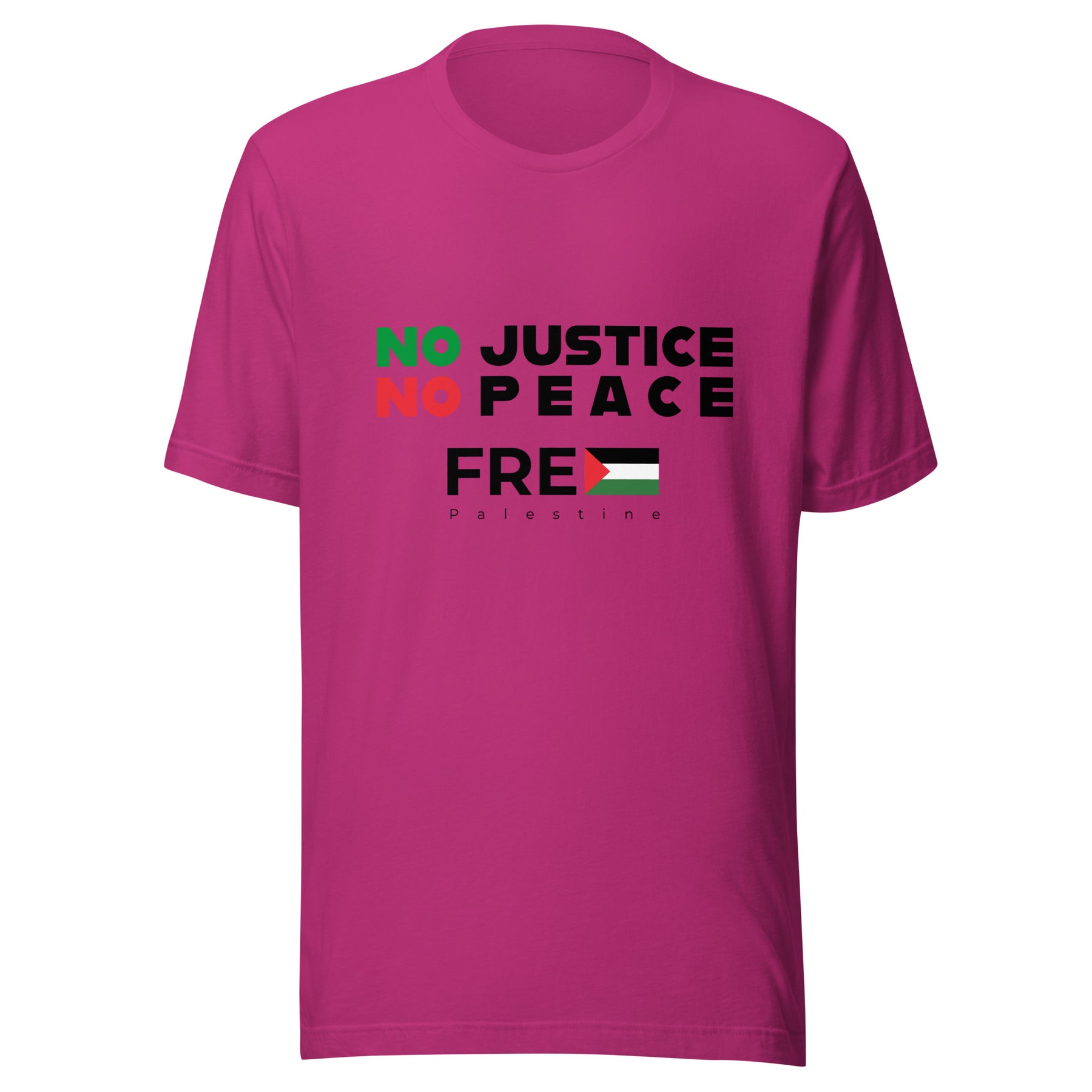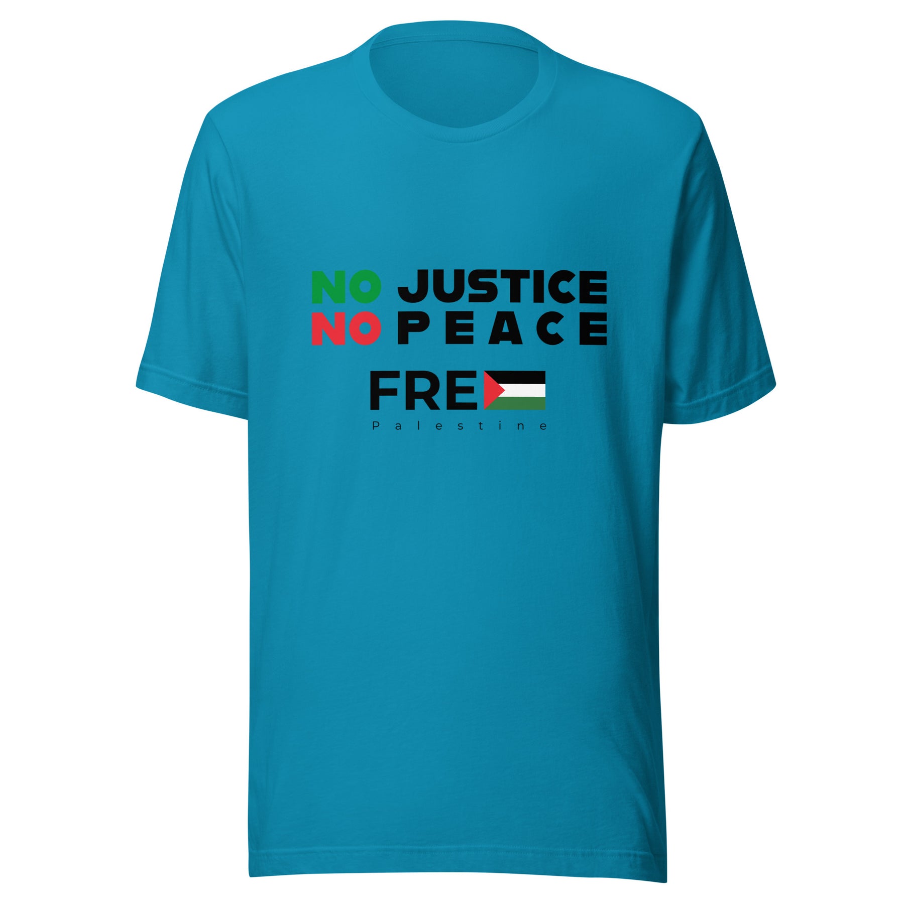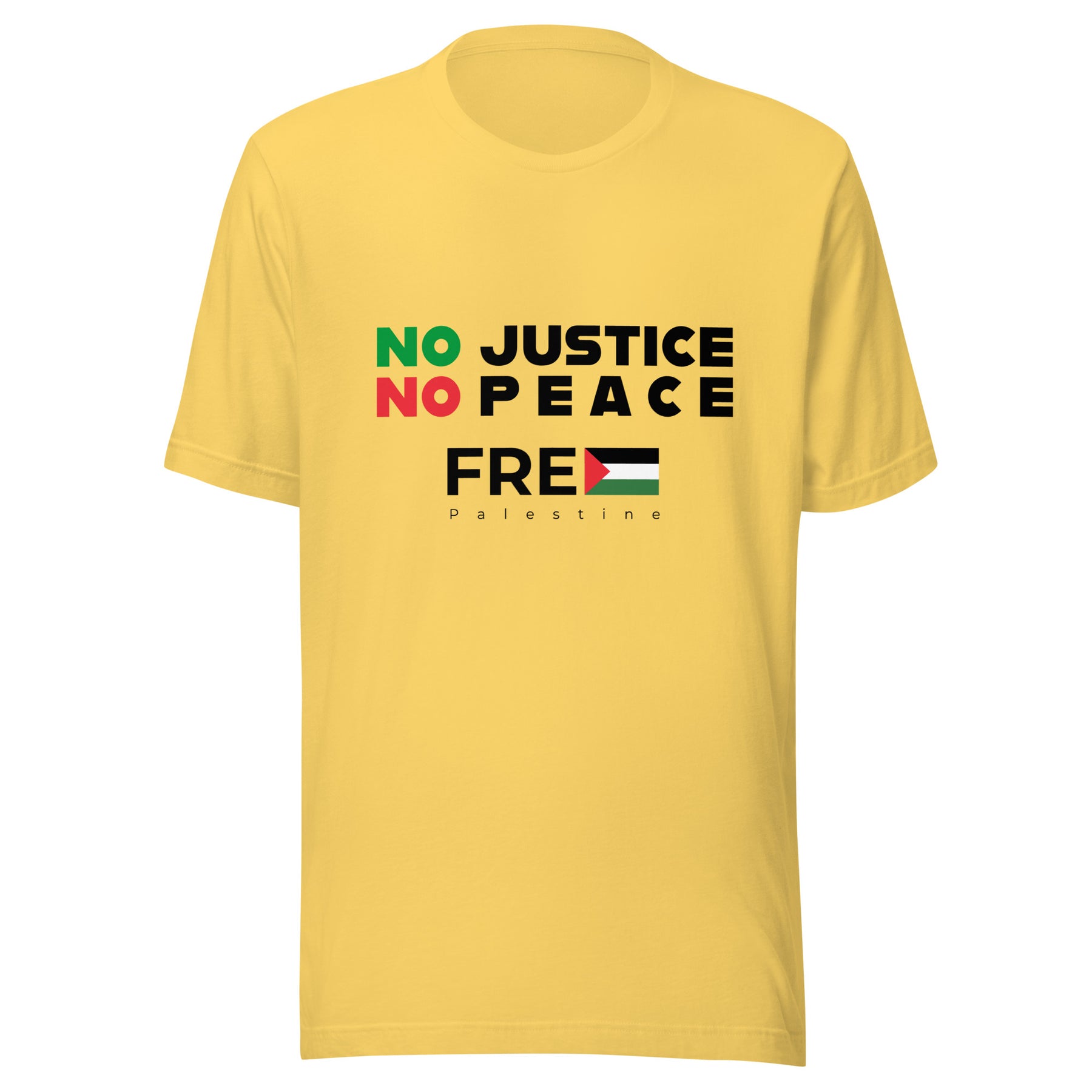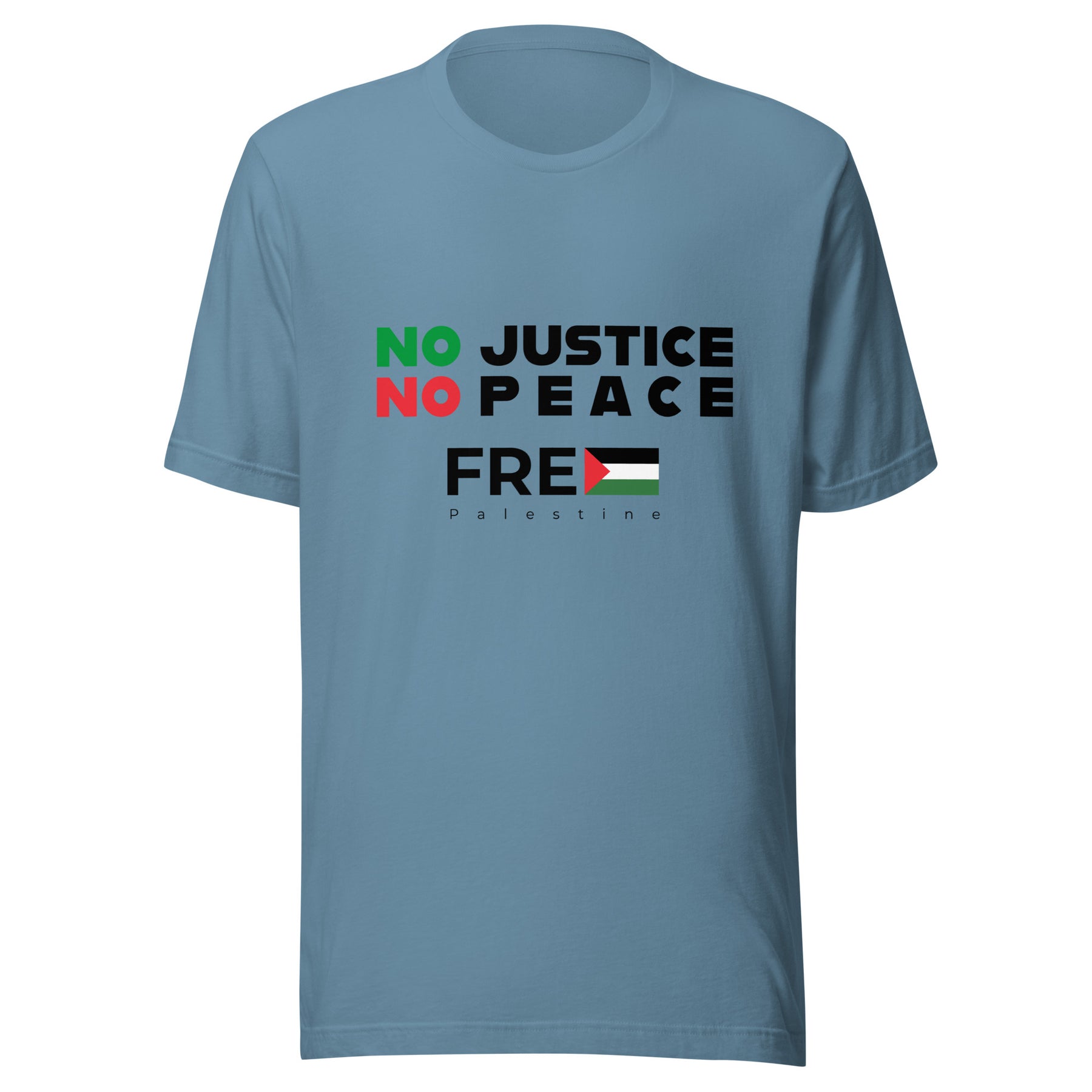 This pro-Palestinian men’s t-shirt carries the defiant message: “No Justice No Peace.” Stand in solidarity with Gaza, speak out against apartheid, and demand an end to the Israeli occupation of Palestine—all while staying comfortable in this everyday essential.