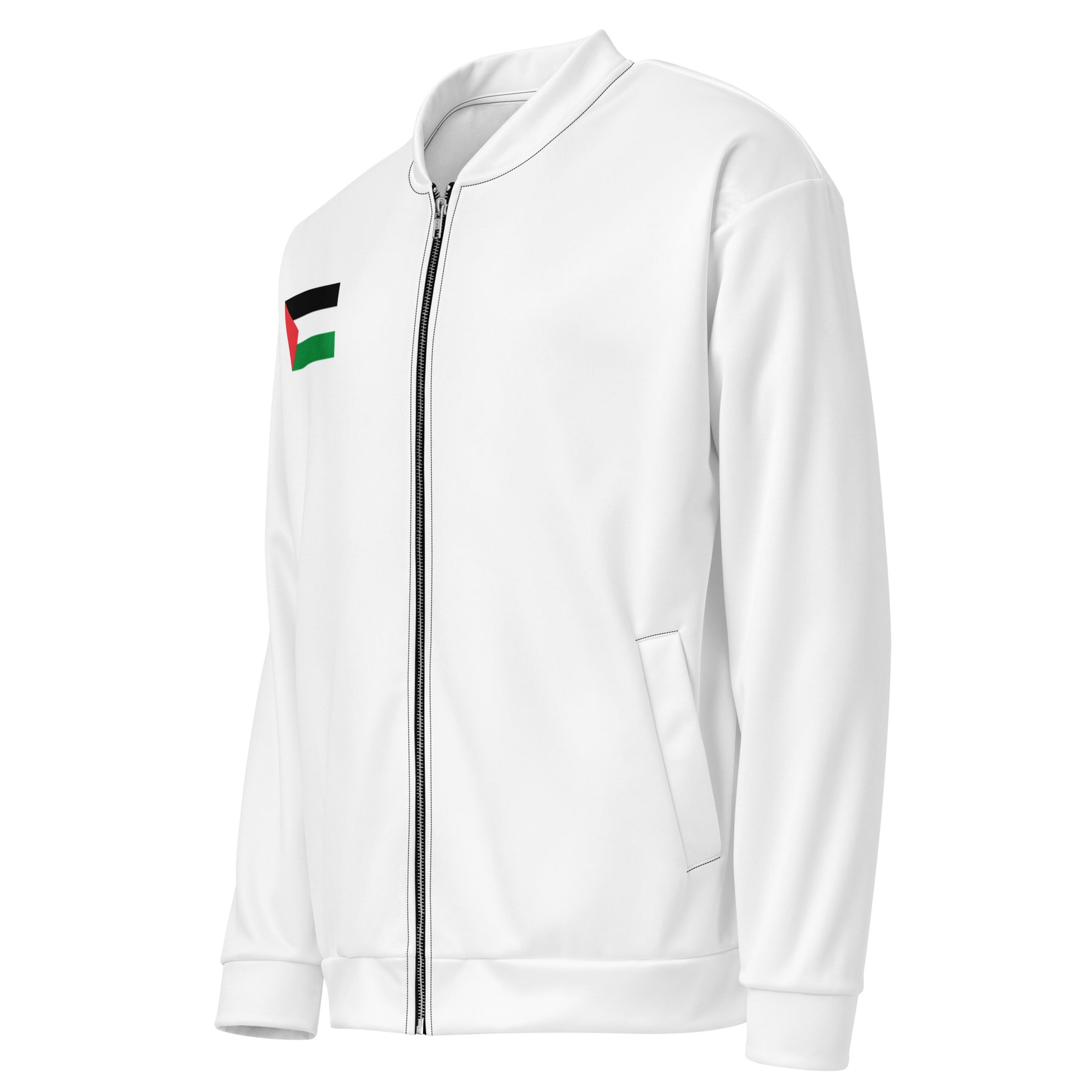 Add a little zing to your wardrobe with this vibrant All-Over Print Bomber Jacket. Wear it on a basic t-shirt, or layer it on top of a warm hoodie—it’ll look great either way. With a brushed fleece inside, and a relaxed unisex fit, this Bomber Jacket is just the stuff of the dreams, so be quick to grab yourself one! Find your Gaza support products here.