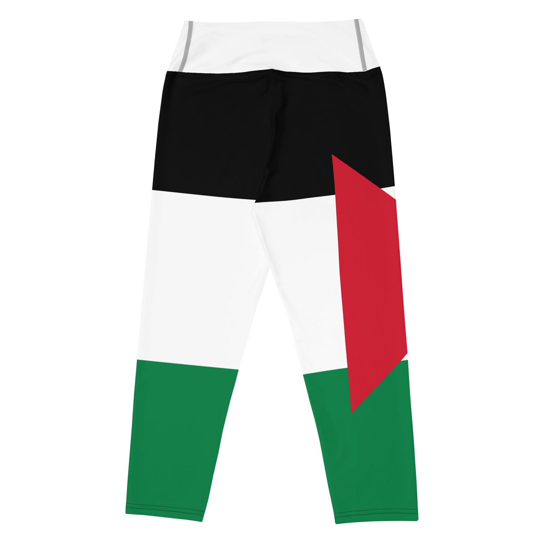 These Palestine Flag yoga capri leggings with a high, elastic waistband are the perfect choice for yoga, the gym, or simply a comfortable evening at home. Palestine support apparel only here.