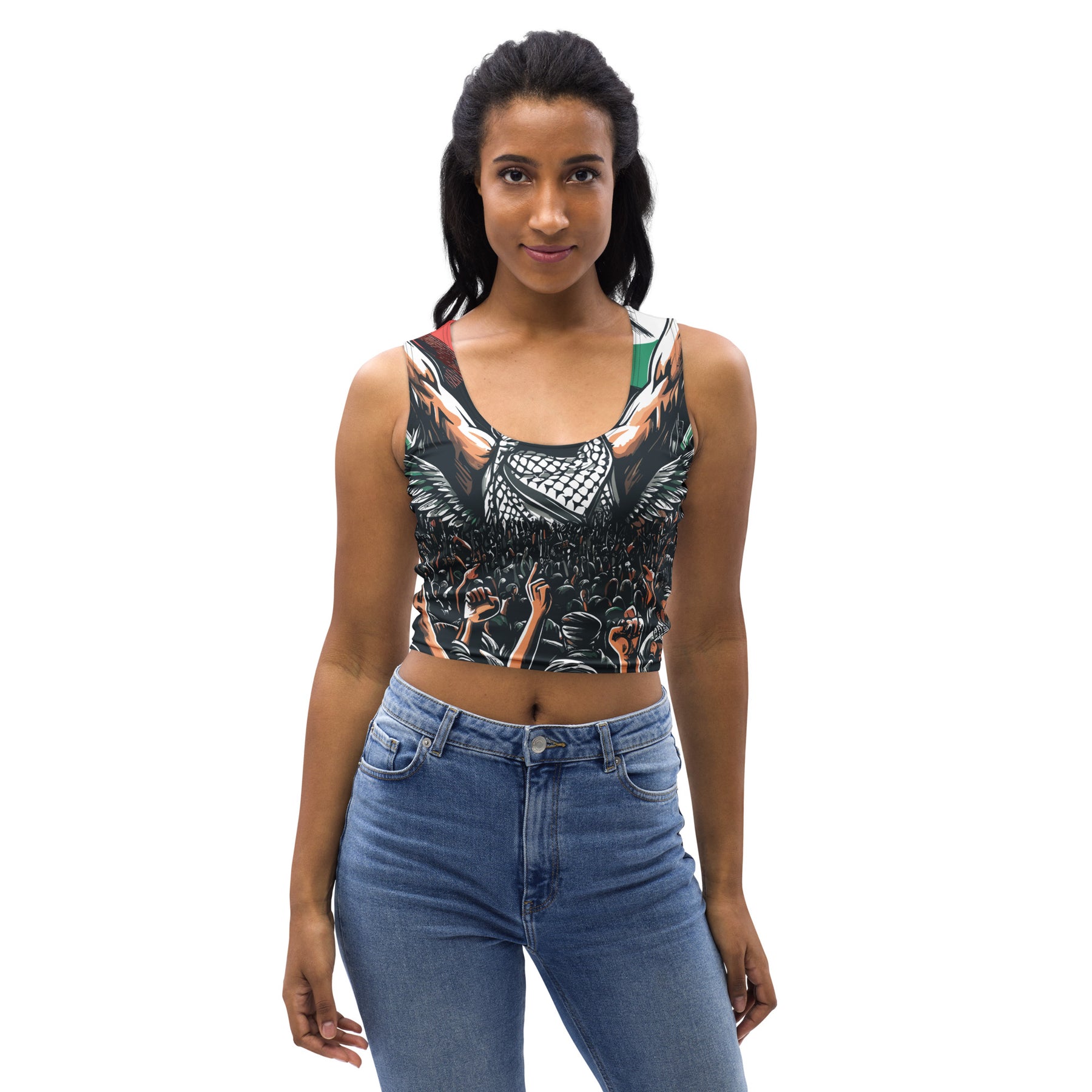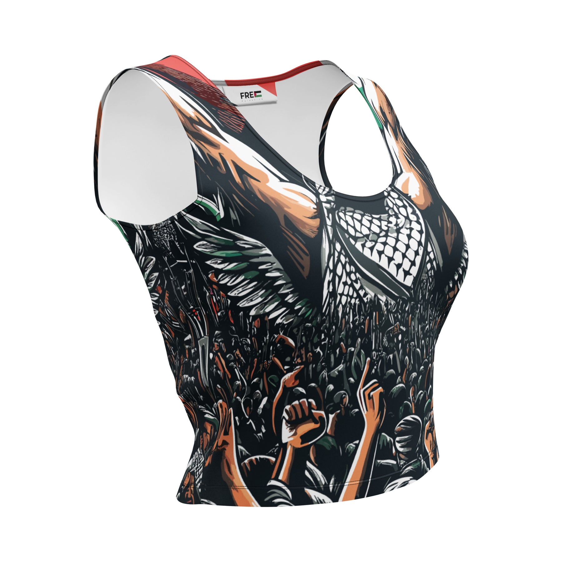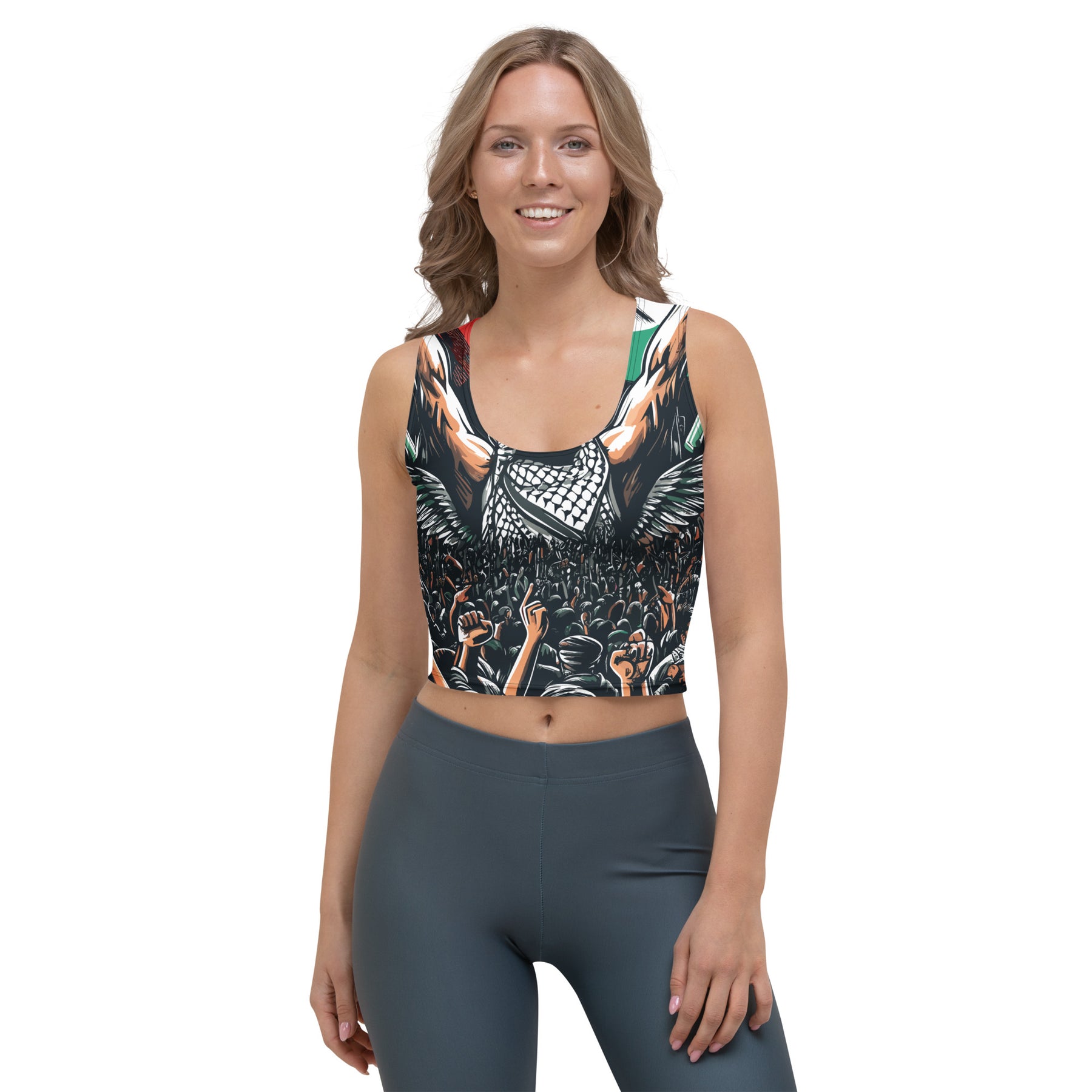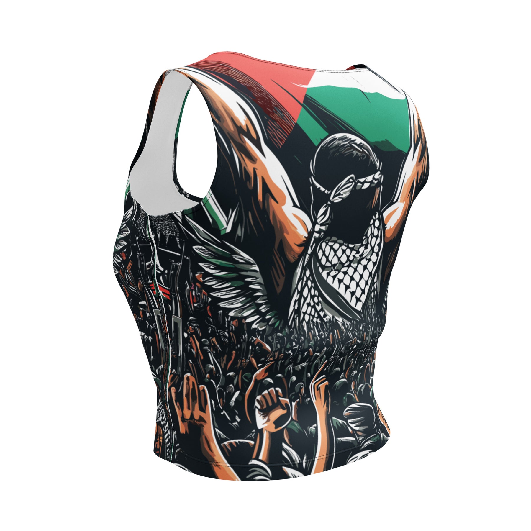 Look fabulous in an all-over printed, body-hugging crop top. Support Palestinian artists at our shop.