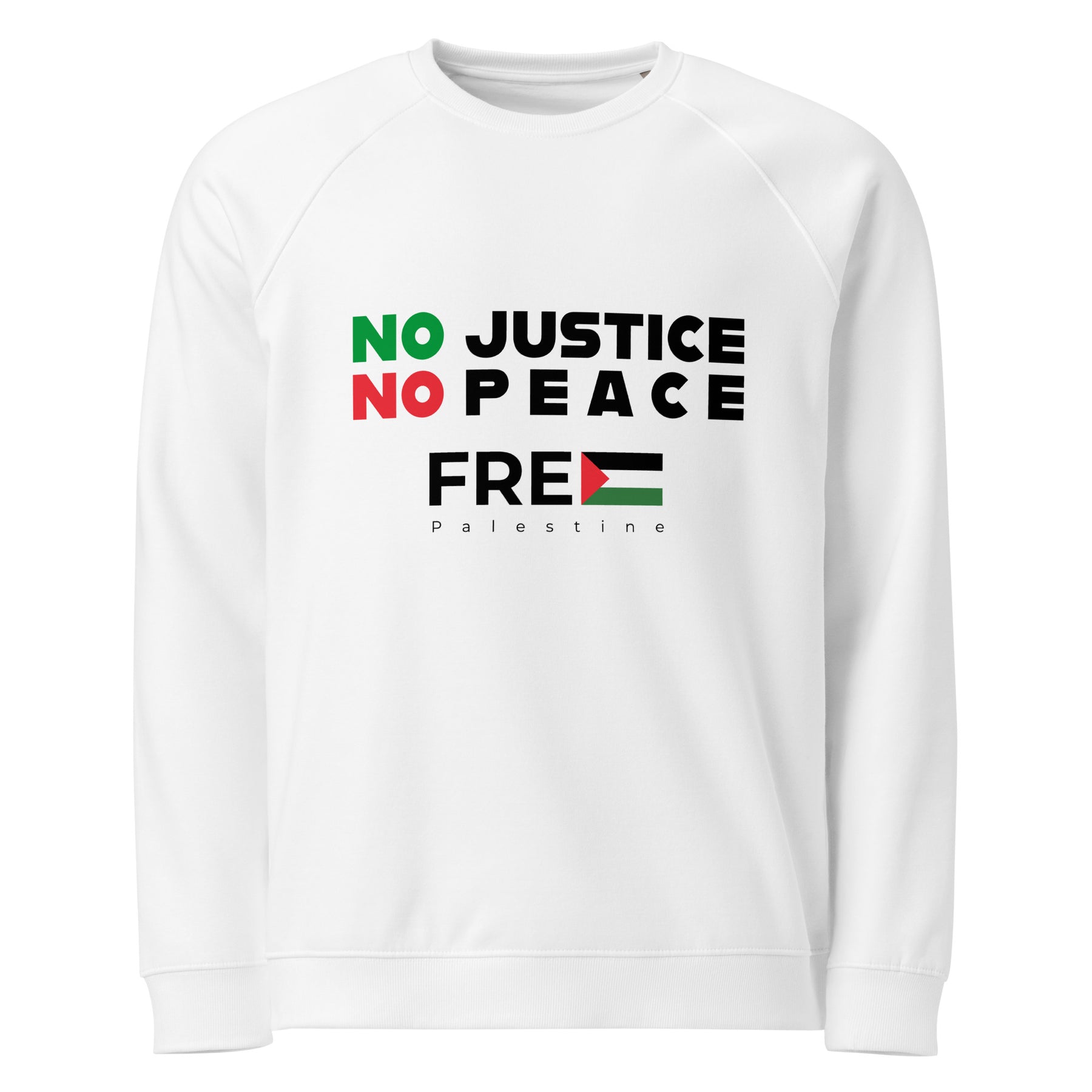 This eco-conscious pro-Palestinian sweatshirt pairs softness with strength. Featuring the powerful chant “No Justice No Peace,” it stands in solidarity with Gaza and calls for an end to the Israeli occupation of Palestine—wrapped in 100% organic comfort.