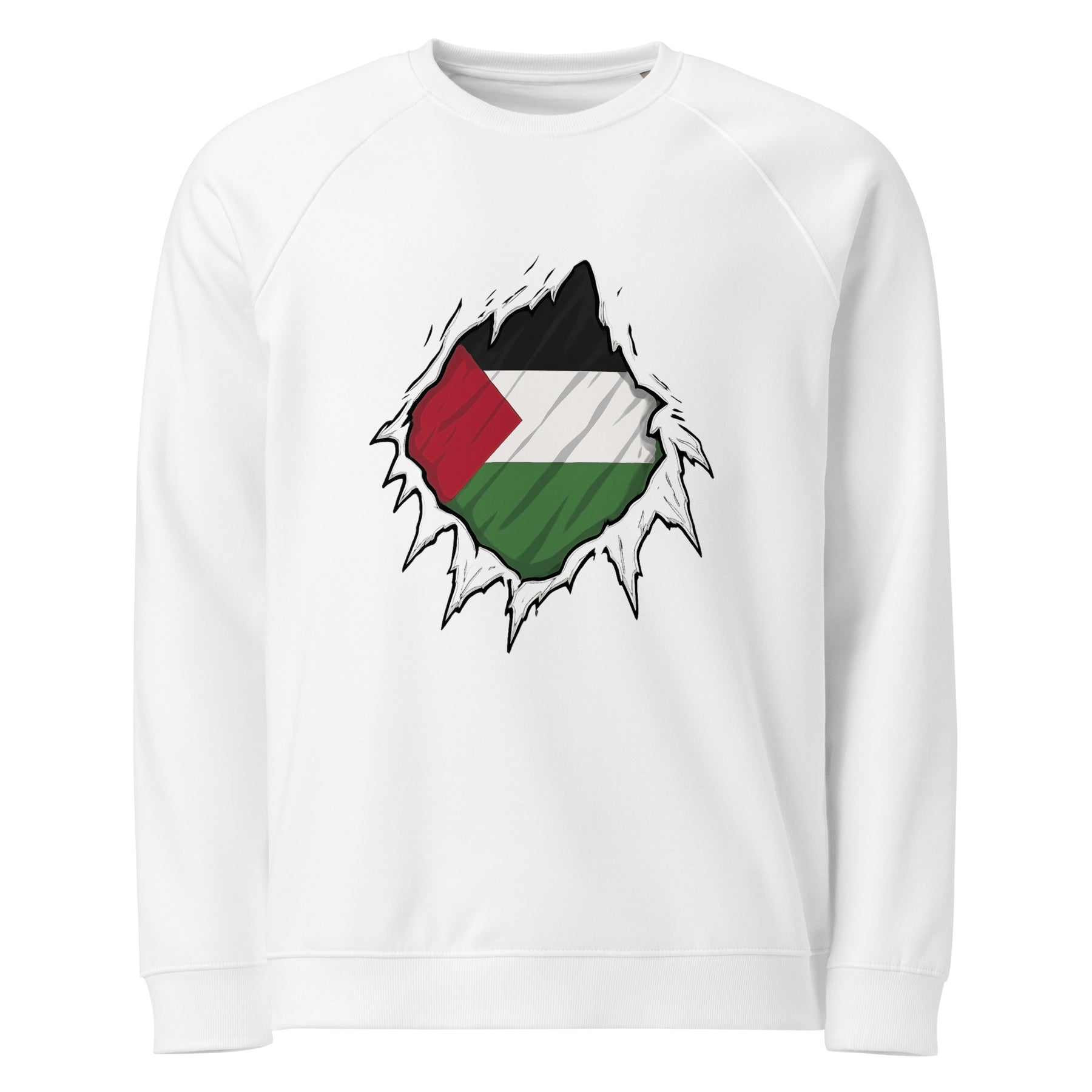 This Palestinian flag sweatshirt for women features a striking torn design that symbolizes the strength hidden beneath oppression. Ethically made and eco-friendly, it’s part of our Palestine Hero collection, designed for those who resist injustice and support freedom.