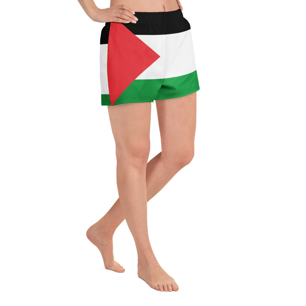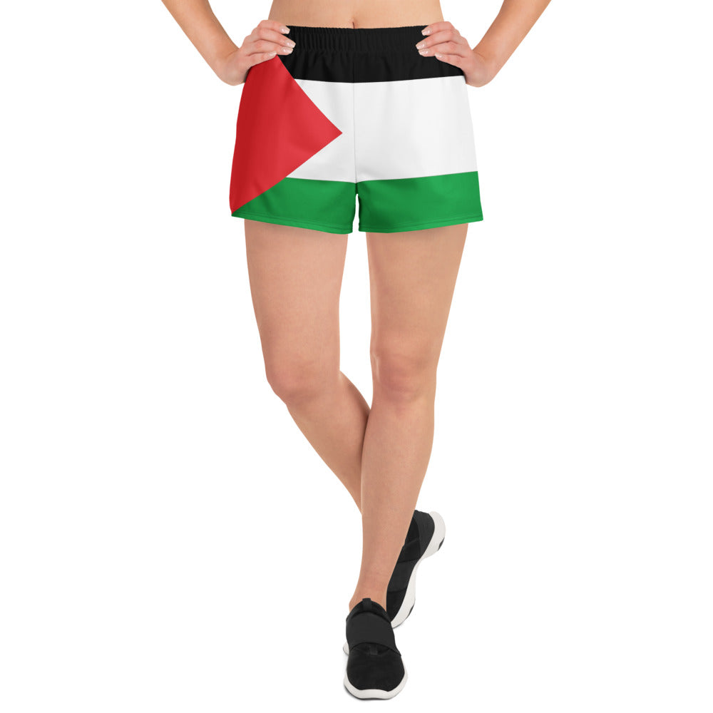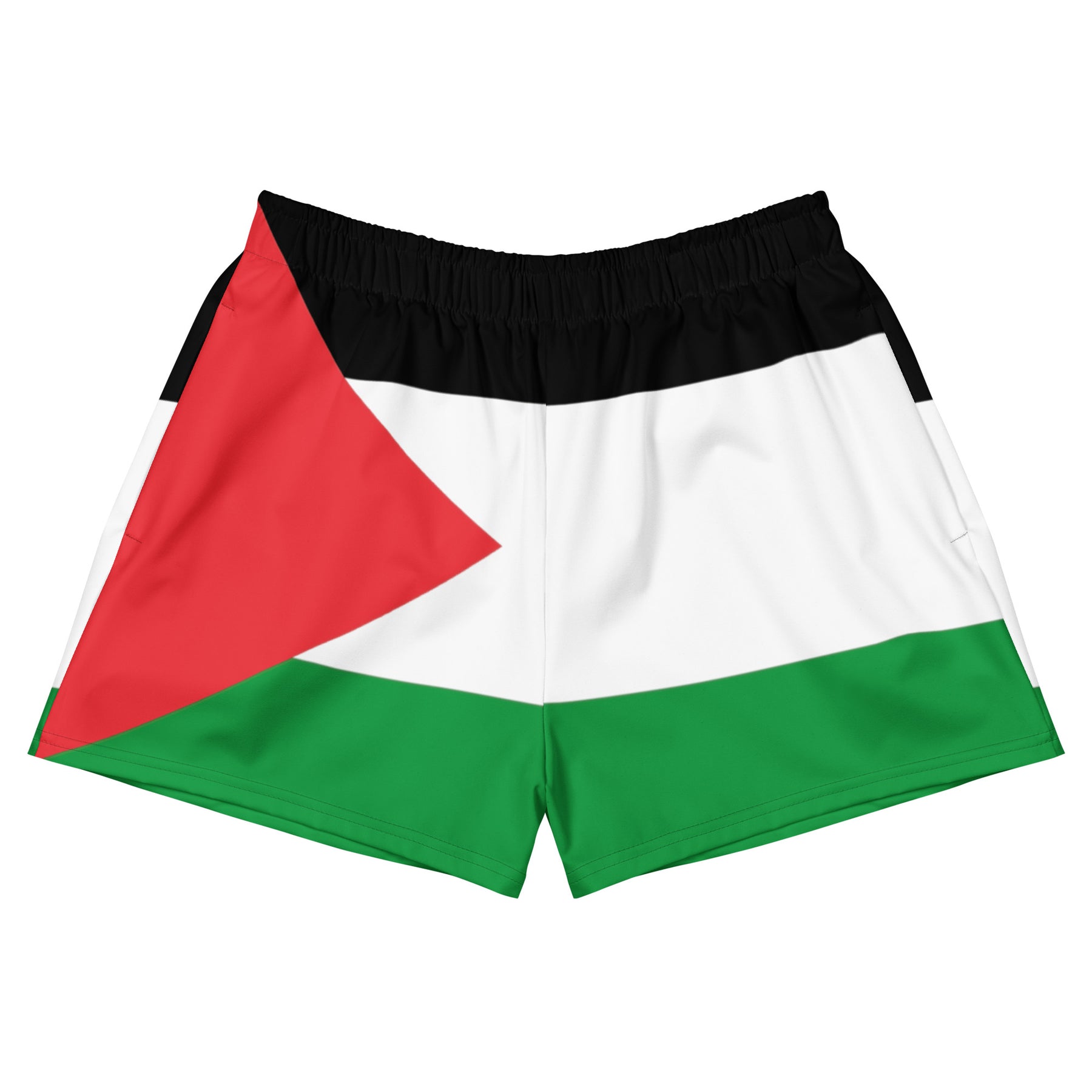 Going for a run? Fancy a swim? Perhaps both? Well, here's just the Palestinian solidarity product for you! These athletic women's short shorts are so comfy and made from such a versatile fabric that you won't feel out of place at any sports event. And, of course, they have pockets. Need we say more? Grab a pair now!