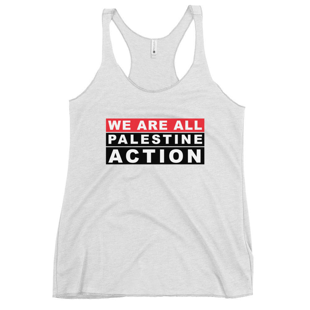 This lightweight and form-fitting Free Palestine racerback tank delivers more than just comfort—it delivers a message. With “We Are All Palestine Action” boldly displayed, this top declares your place in the movement to end the Israeli occupation and defend Palestinian freedom.